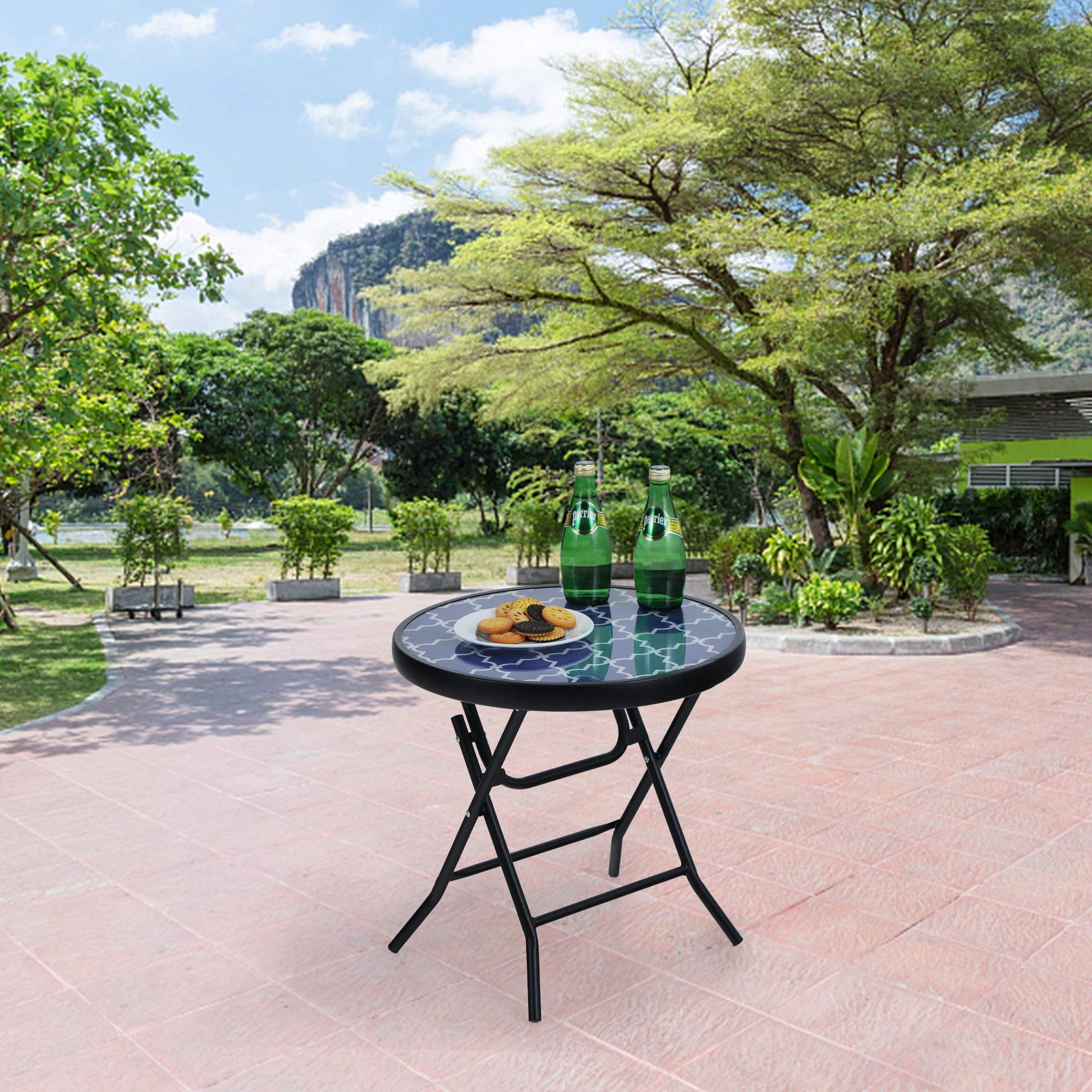 PHI VILLA Folding Side Table, Foldable Coffee Table, Outdoor Garden Table, Small Round Patio Table for Outdoor and Indoor-Blue
