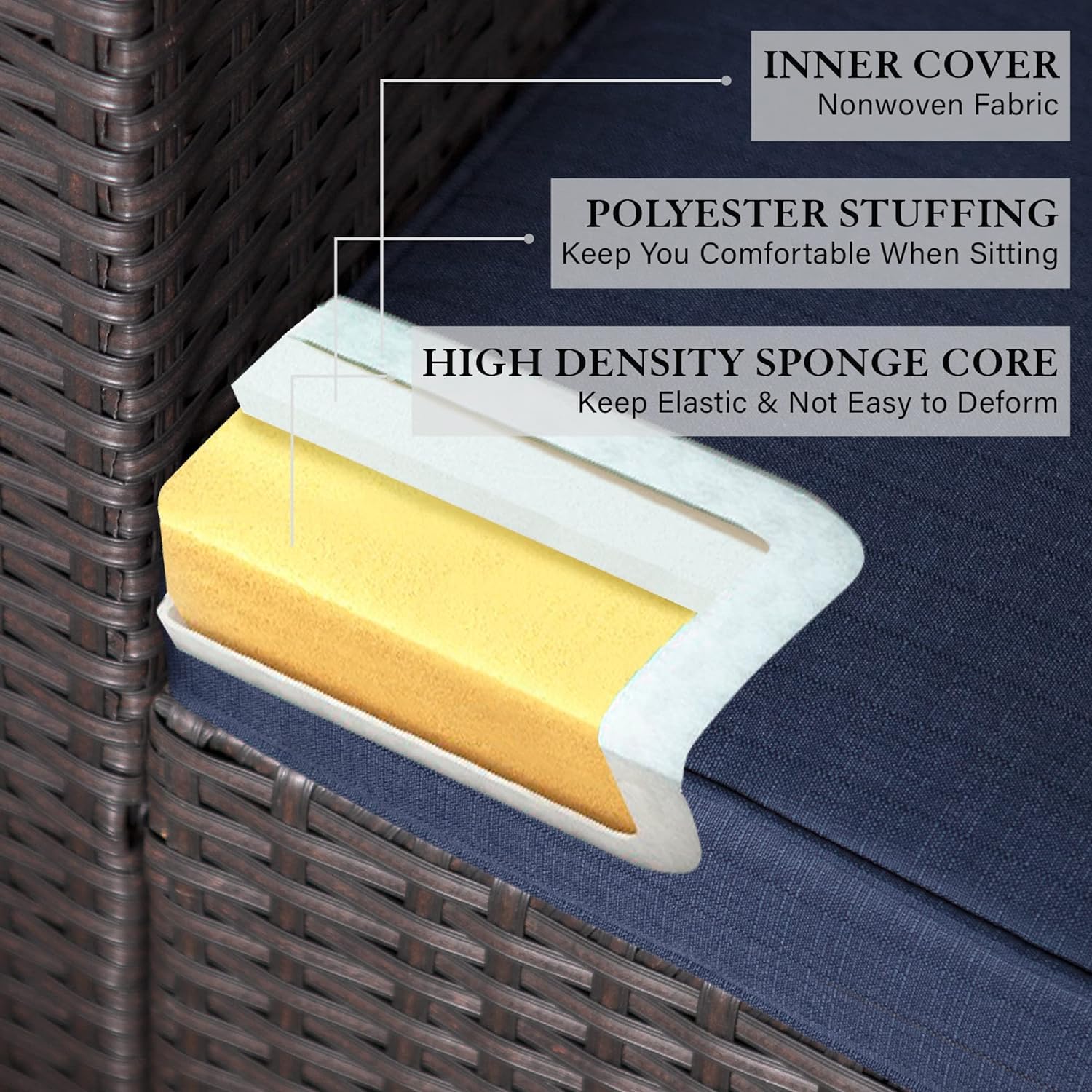 - Thick and Comfortable Cushions: Enjoy the ultimate comfort with our outdoor corner sofa’s large and thick cushions, filled with a 3-layer structure for added coziness.