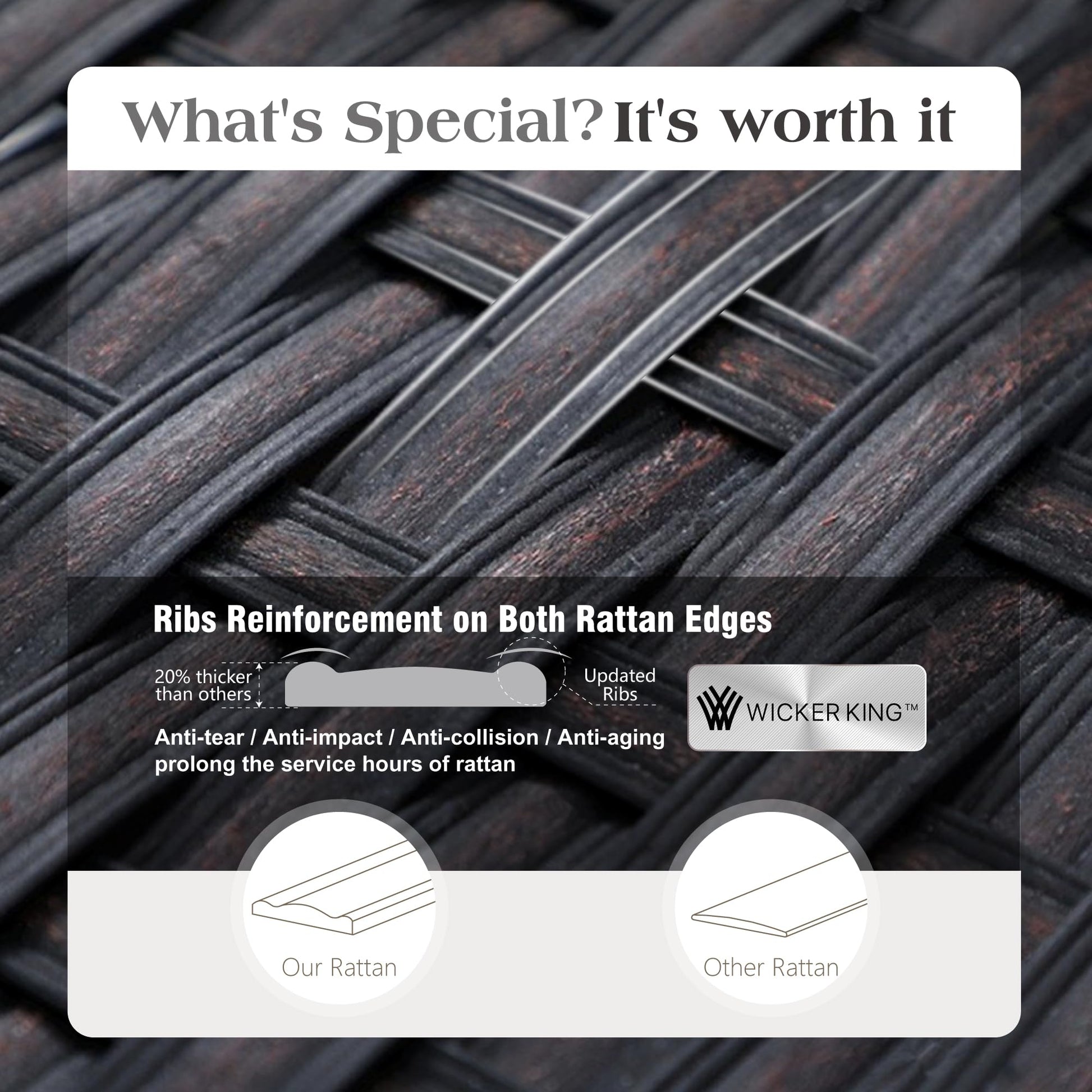 - High-Quality Plastic Rattan: Our rattan garden furniture set are crafted with high-quality polyster rattan, ensuring superior strength and resistance to breakage and fading.