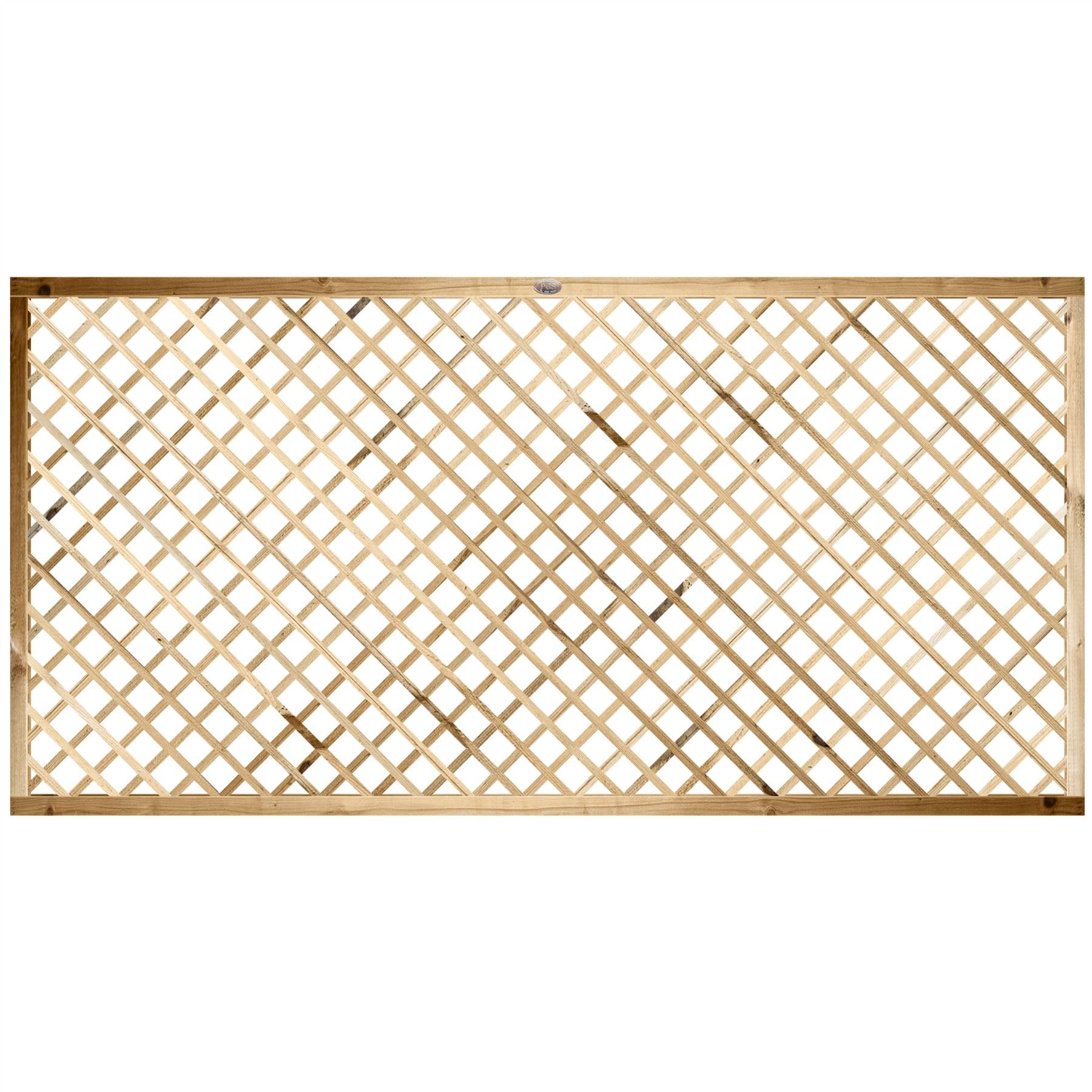 - Product Dimensions Width: 6ft (183cm) x Height: 4ft (120cm) The Elite Alderley Diamond Privacy design trellis has approximately 20mm diamond holes. The Elite Alderley Range uses 8mm x 20mm Laths which are smooth-planed and have smooth chamford edges. 30mm x 30mm timber has been used for the perimeter frame and connected together with bridle joins. The perimeter frame has been rebated for the trellis to sit firmly within.