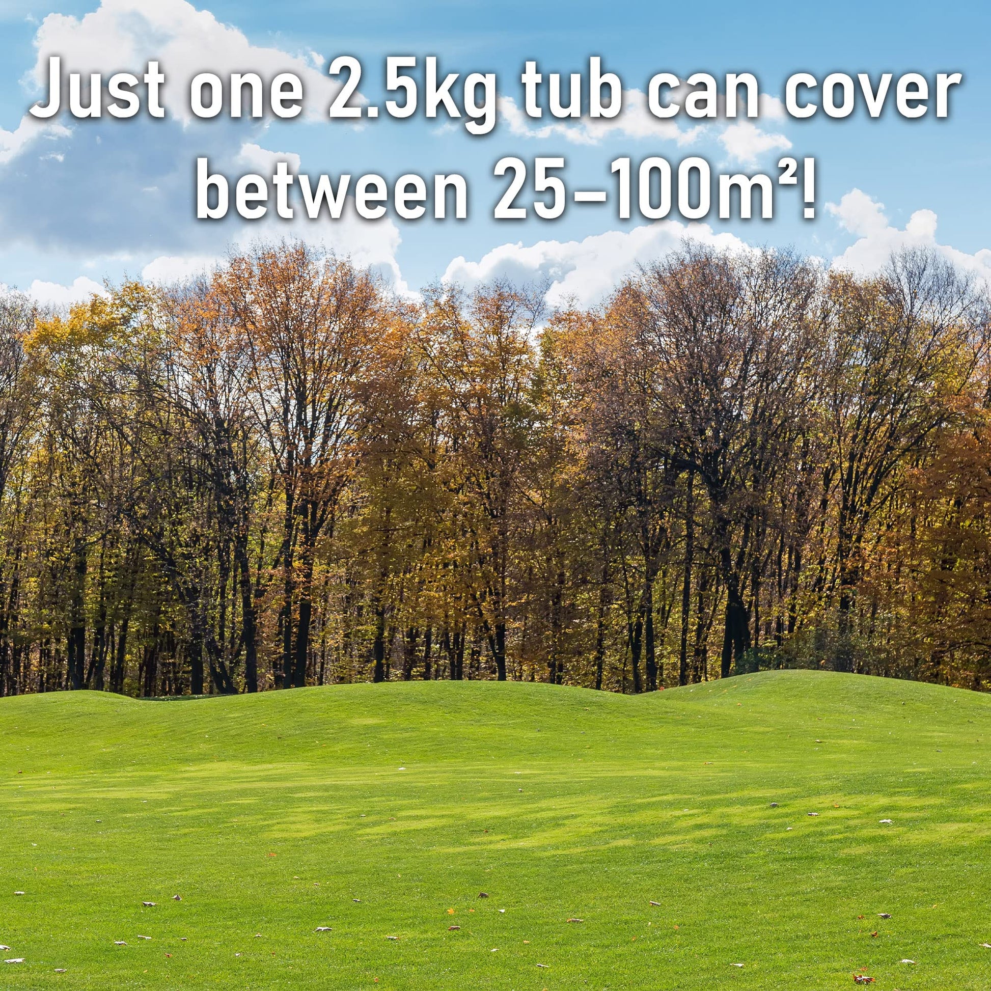 - APPLICATION RATE: Just one 2.5kg tub can cover between 25 – 100 m2! The application rate is 25-35 g/sqm for regular use and 40g/sqm for removing unwanted growths. This will keep your lawn strong & promote green up
