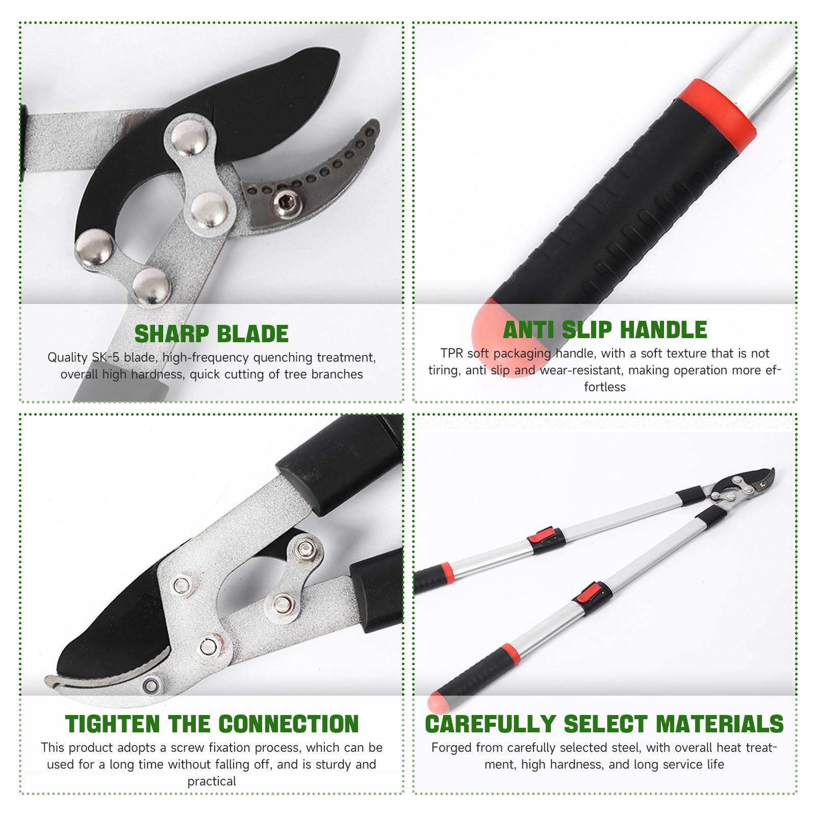 - 【Low Friction Performance】 The PTFE-coated blades reduce friction, ensuring smooth cutting without sap buildup or rust. Our bramble cutter technology ensures that every cut is clean and precise, enhancing the longevity of your tree lopper.