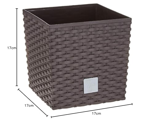 Prosper Plast Rattan Planter Dark Brown, Small Size 17cm Square Shaped Flower Pot