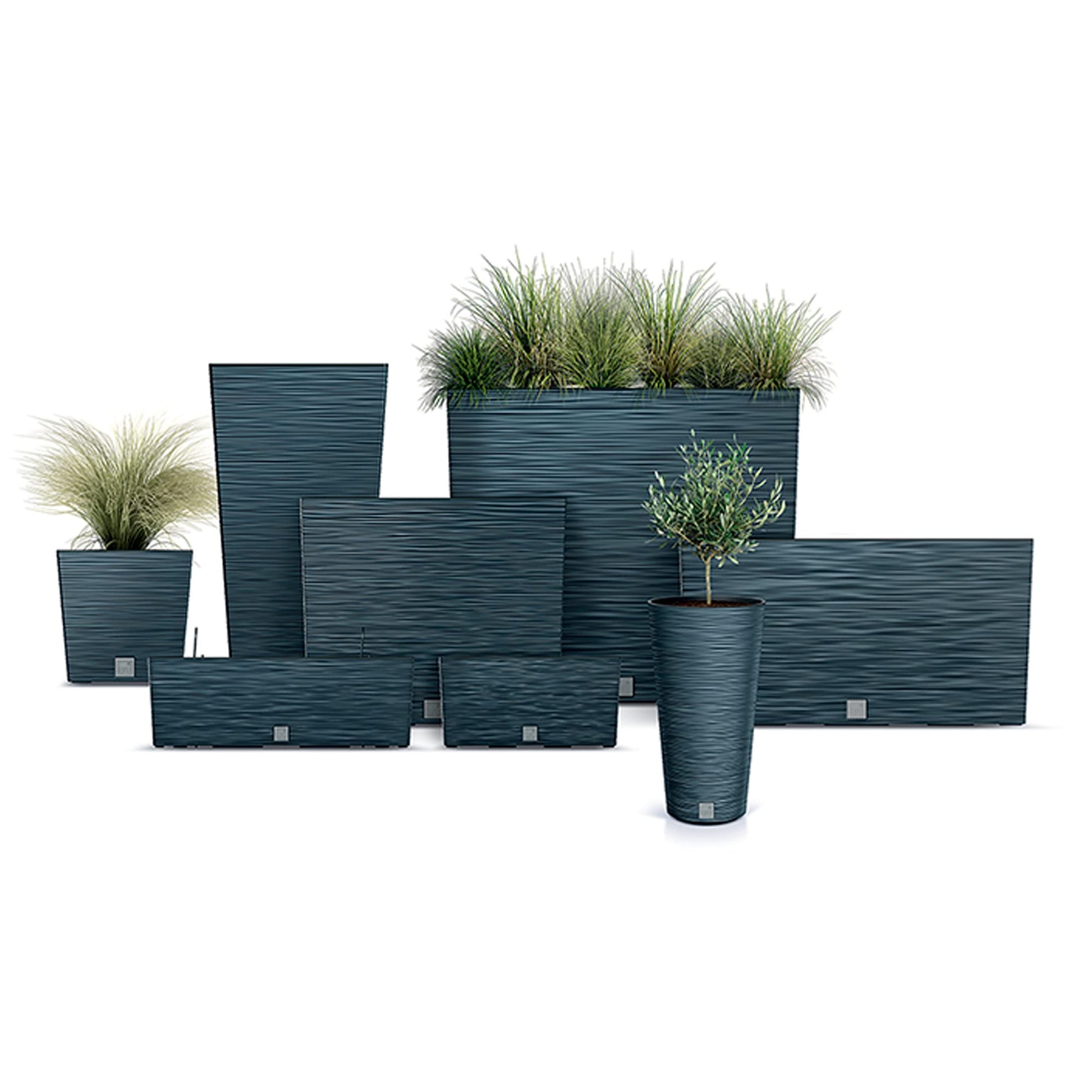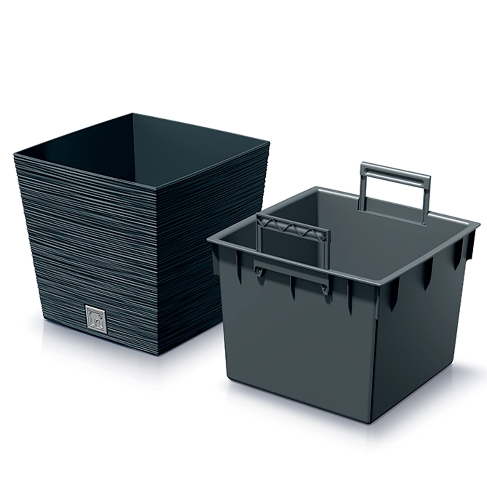 Prosperplast 2-in-1 Flower Pot with Inner Pot Planter Plastic Square Chisel Look Anthracite (24 cm x 24 cm x 23.5 cm)