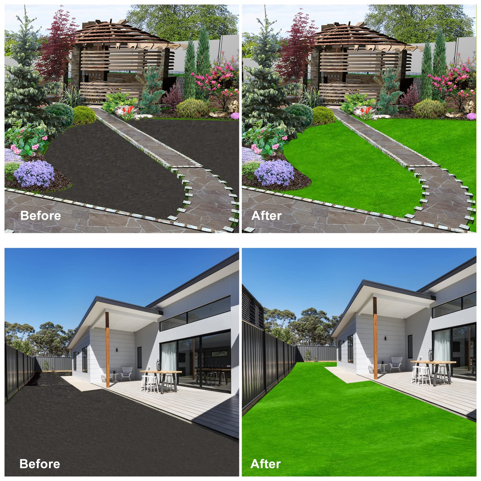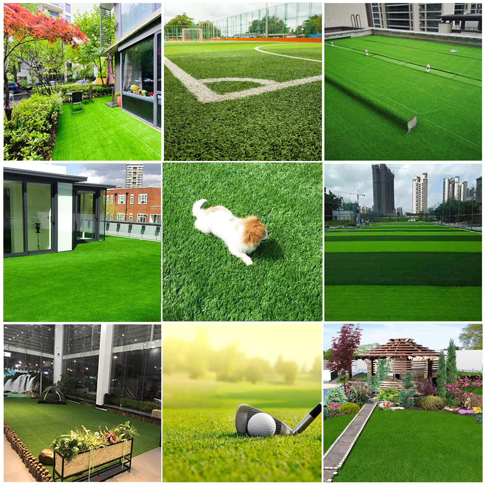 - Applicable to a Variety of Scenarios: Fake grass can be laid on soil, concrete, gardens, patios, porches, or used as home mats, doormats and other indoor and outdoor places. Fake grass pads can also be placed in pet play areas where scratching by pets will not cause damage.