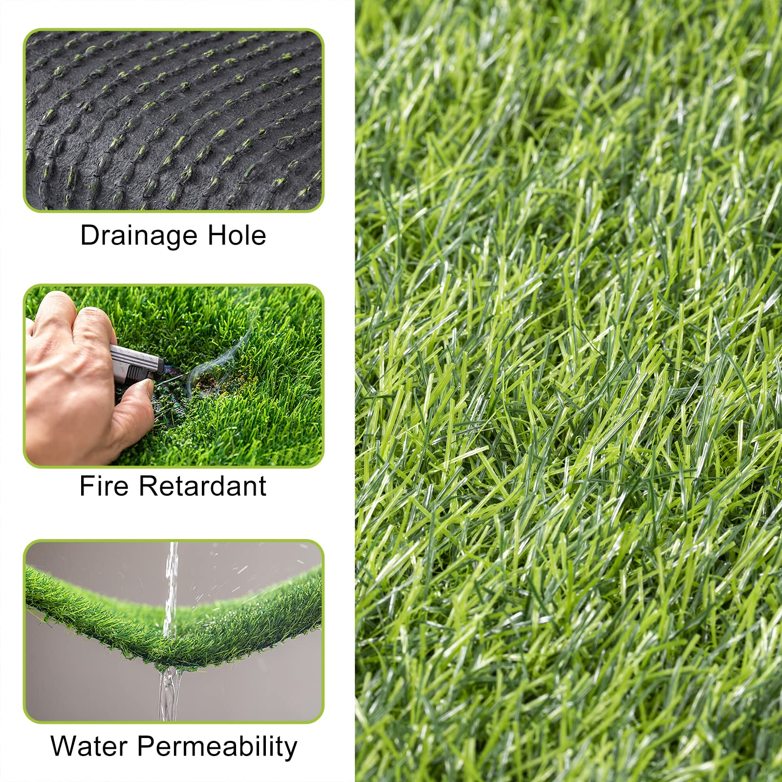 - Reduced Maintenance and Upkeep: Rubber backing with drainage holes, good drainage allows the fake grass to dry quickly. Fake grass does not require daily maintenance such as mowing, watering and fertilizing. can save us more time.