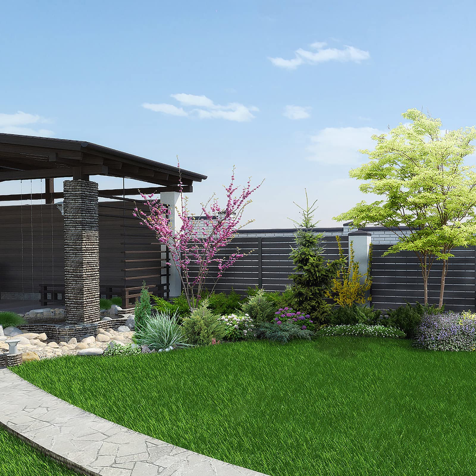 - Easy to Install: Laying fake grass is very simple. You just need to mark and dig out an area, lay out the base, spread the sod and seal it. Whether or not to fill the base is up to you. It can also be cut to the desired size or shape without any wear.
