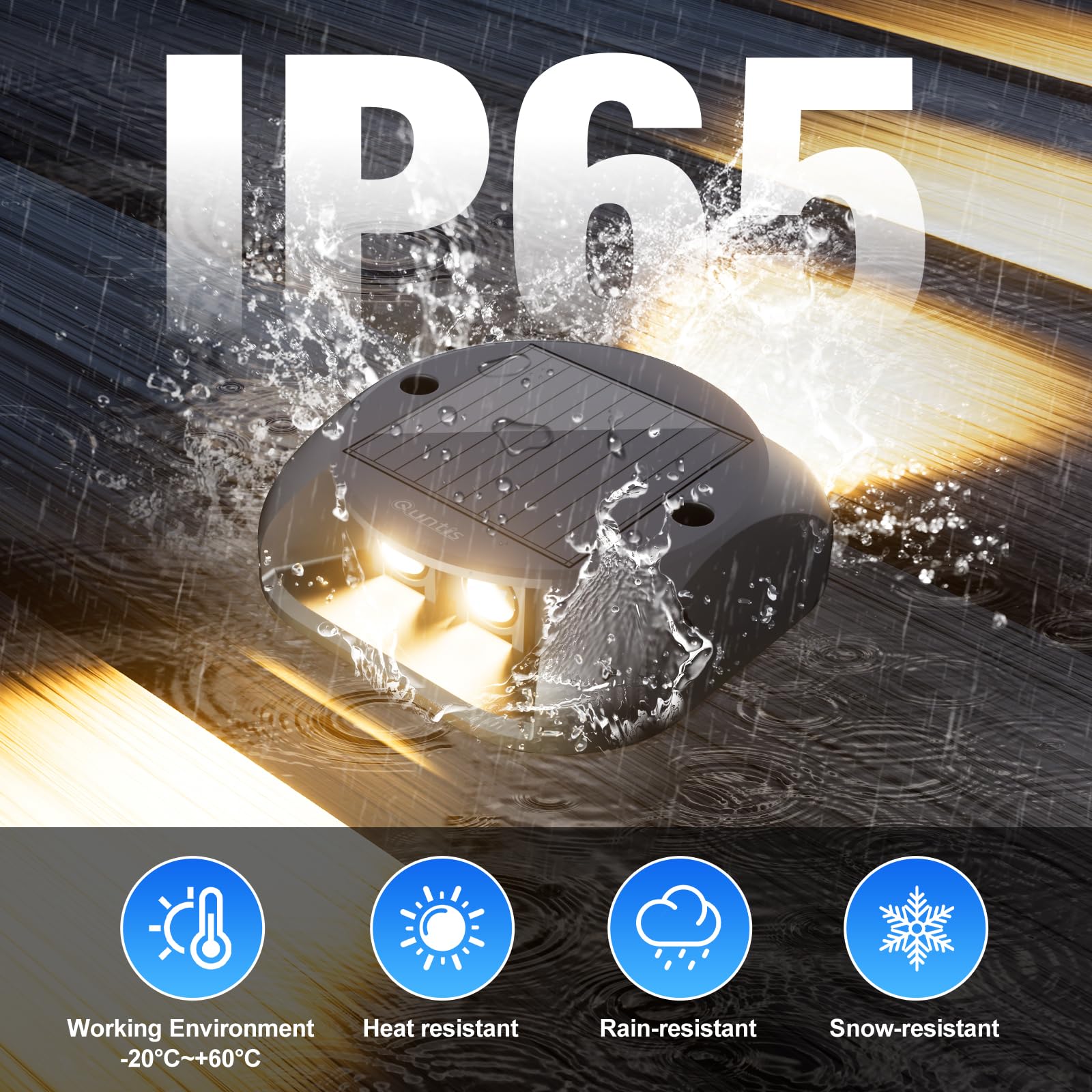 Quntis Solar Decking Lights 4 Pack, Warm White Solar Ground Light IP65 Waterproof, Pressure Resistant 3 Tons Driveway Lights for Stair Garden Step Pathway Walkway Patio Front Door
