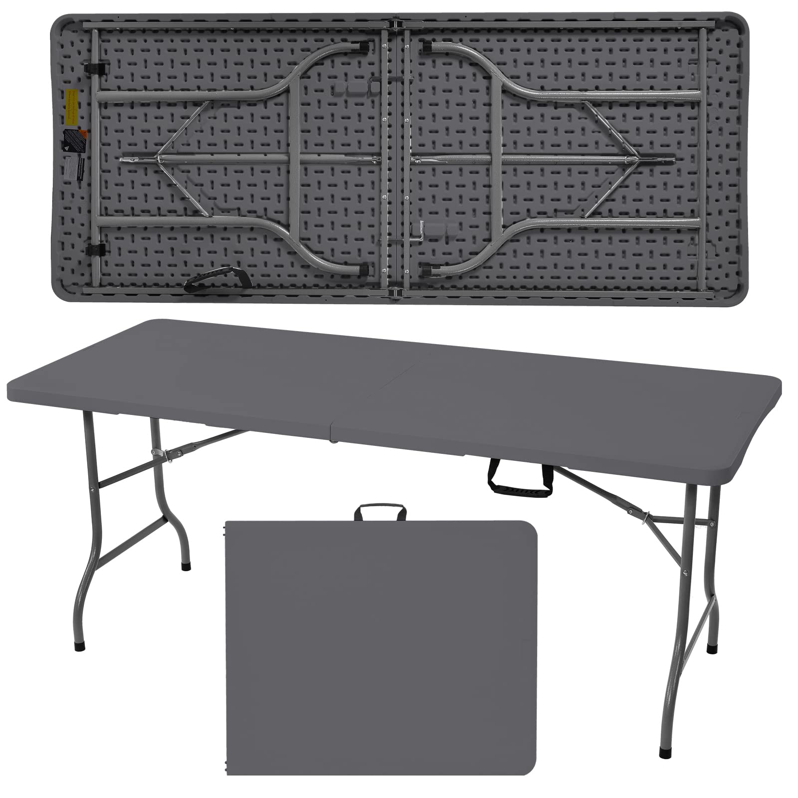 Rainberg 6ft Heavy Duty Folding Table, Tabletop & Sturdy Metal Frame, Foldable Table with Handle, Waterproof, Portable, & Easy Assembly, Ideal for Parties, BBQ, Camping, Beach, Indoor & Outdoor Use