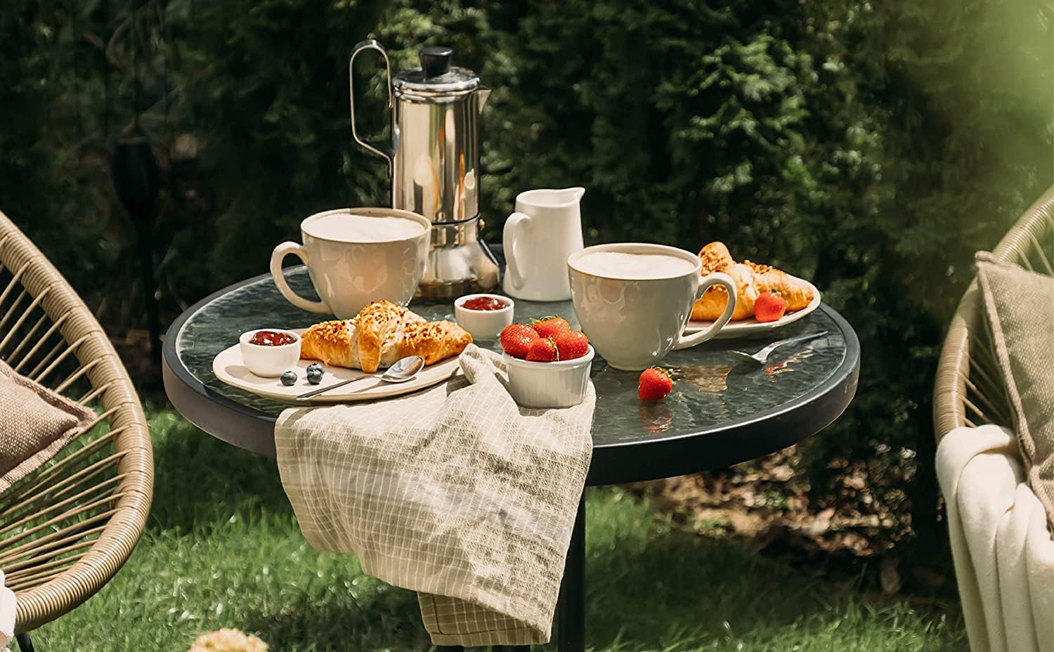 The rust-resistant, powder-coated black metal frame ensures longevity. It's crafted to withstand the elements, making it a timeless addition to your patio, garden, conservatory, or decking. This table combines durability with a sleek, modern look, making it suitable for various decorative styles.