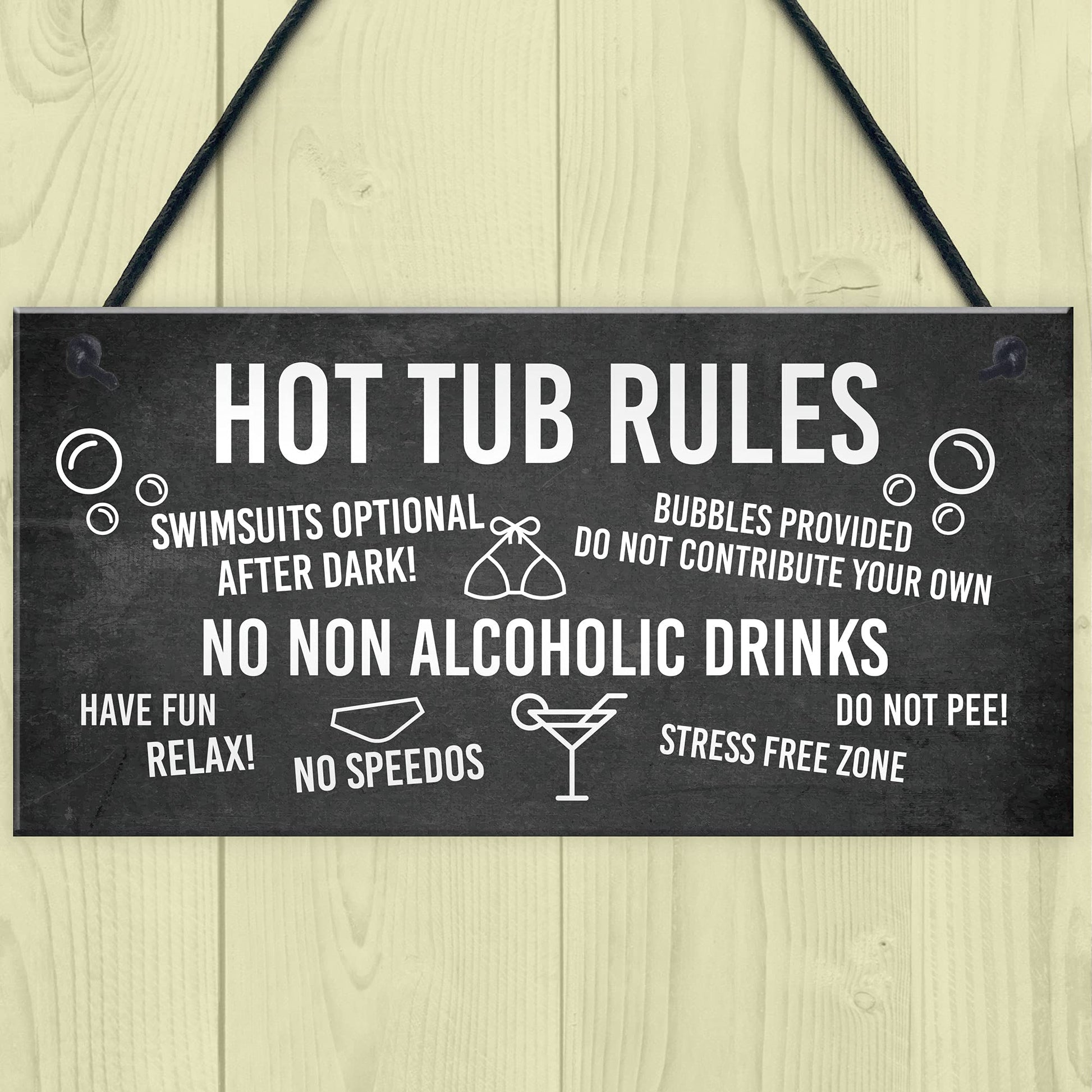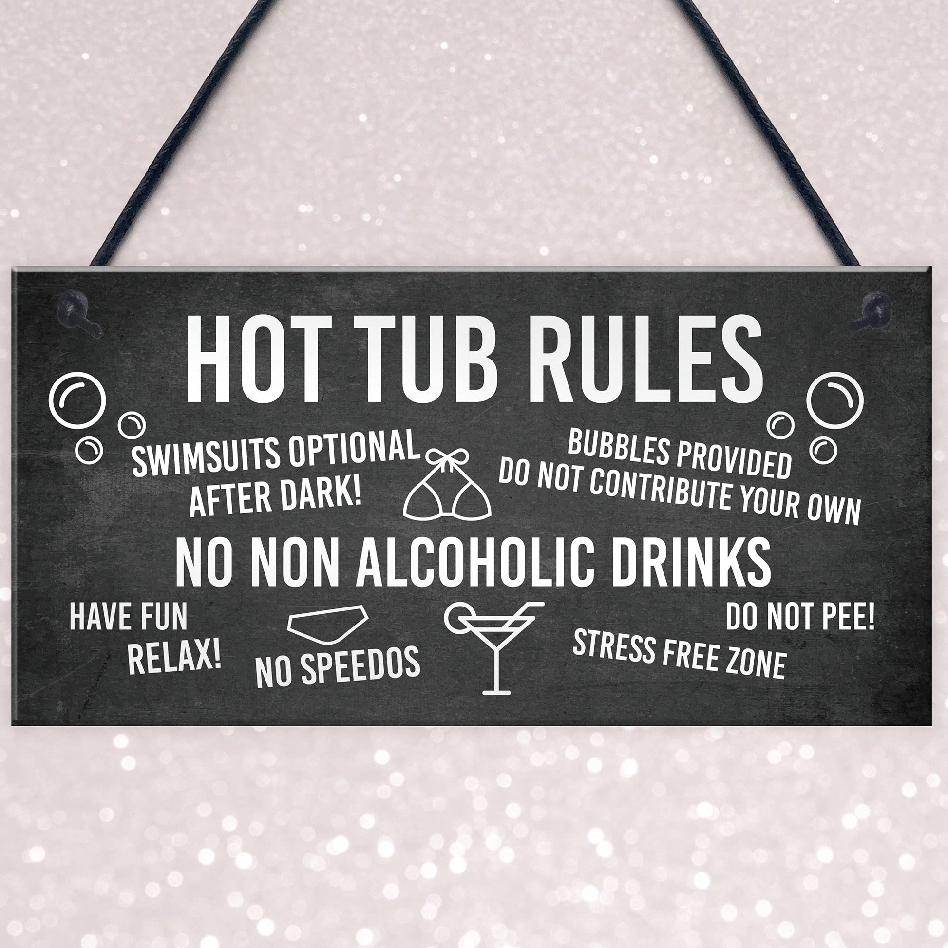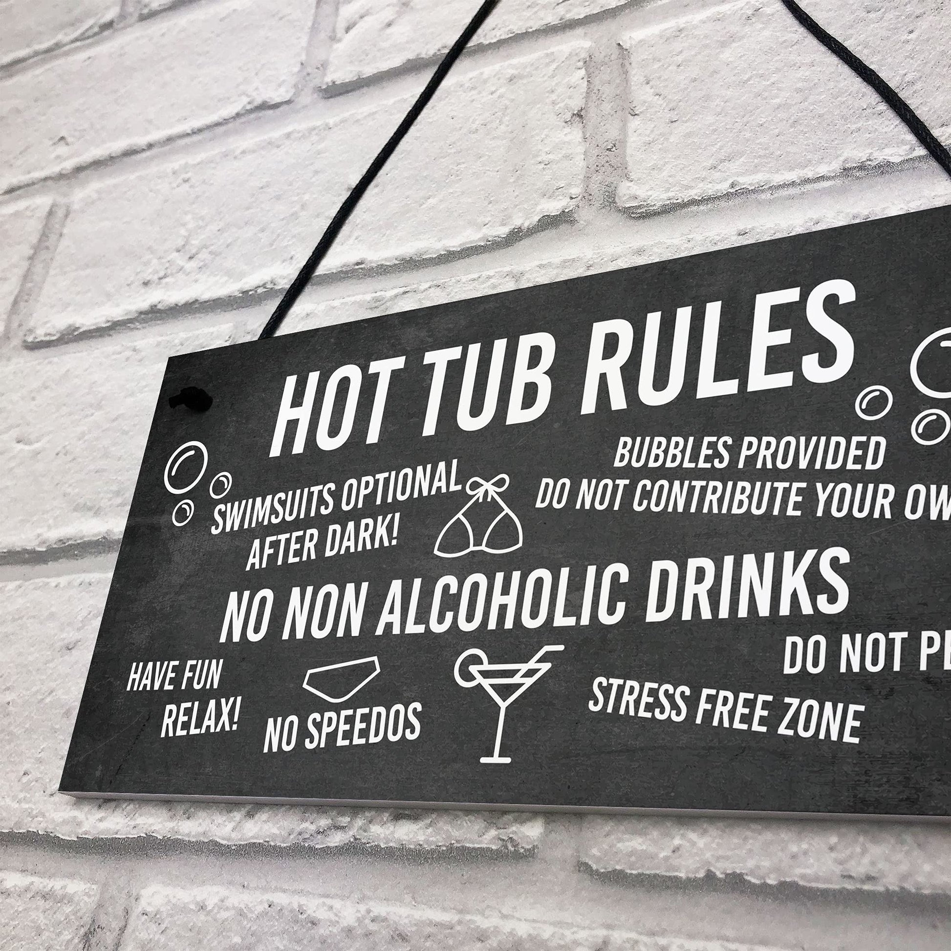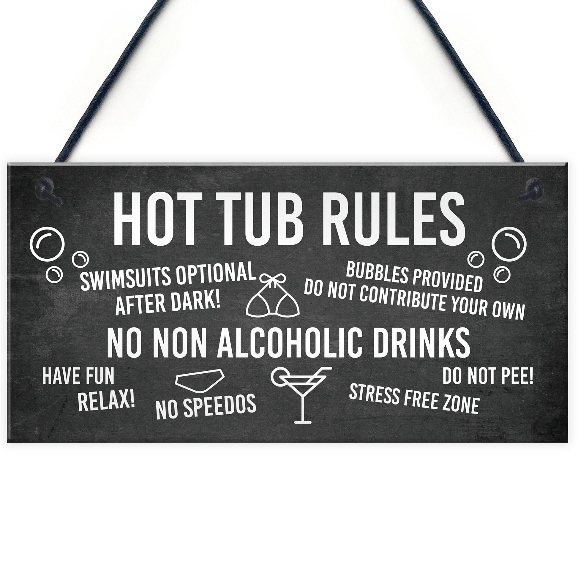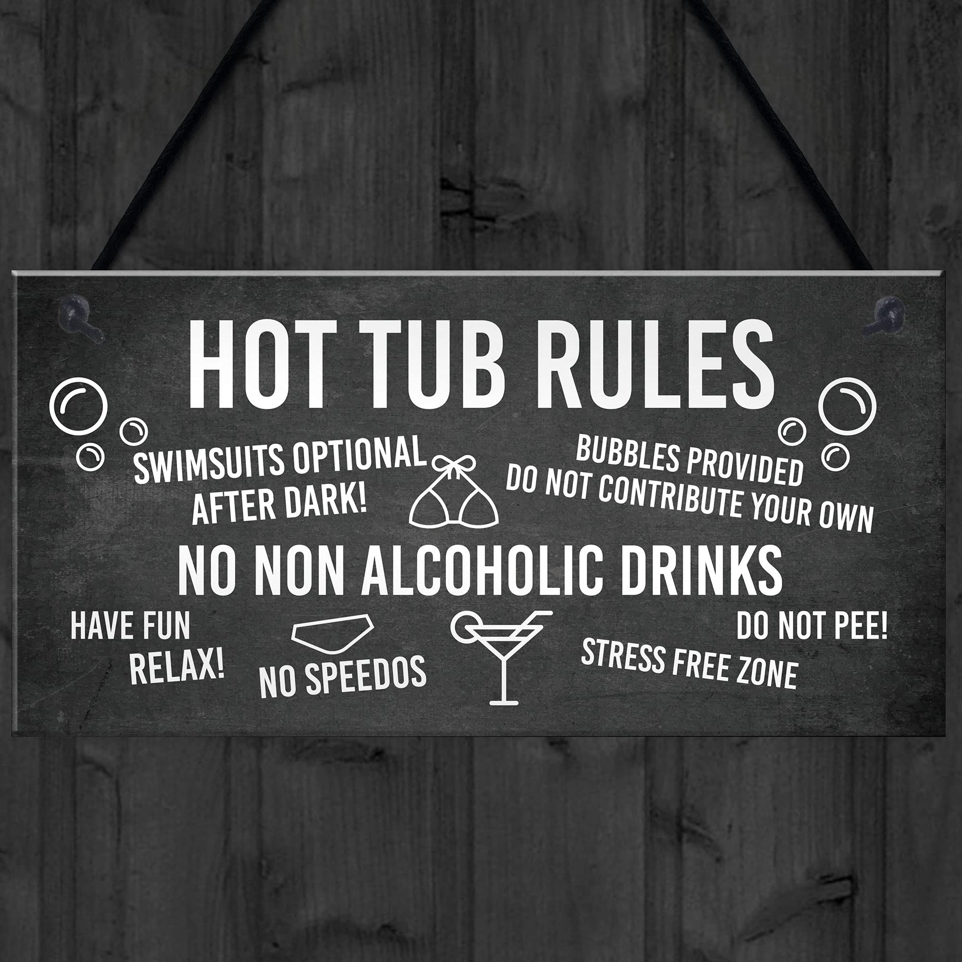 RED OCEAN Funny Hot Tub Rules Sign Perfect Hot Tub Accessories Garden Sign Home Gift