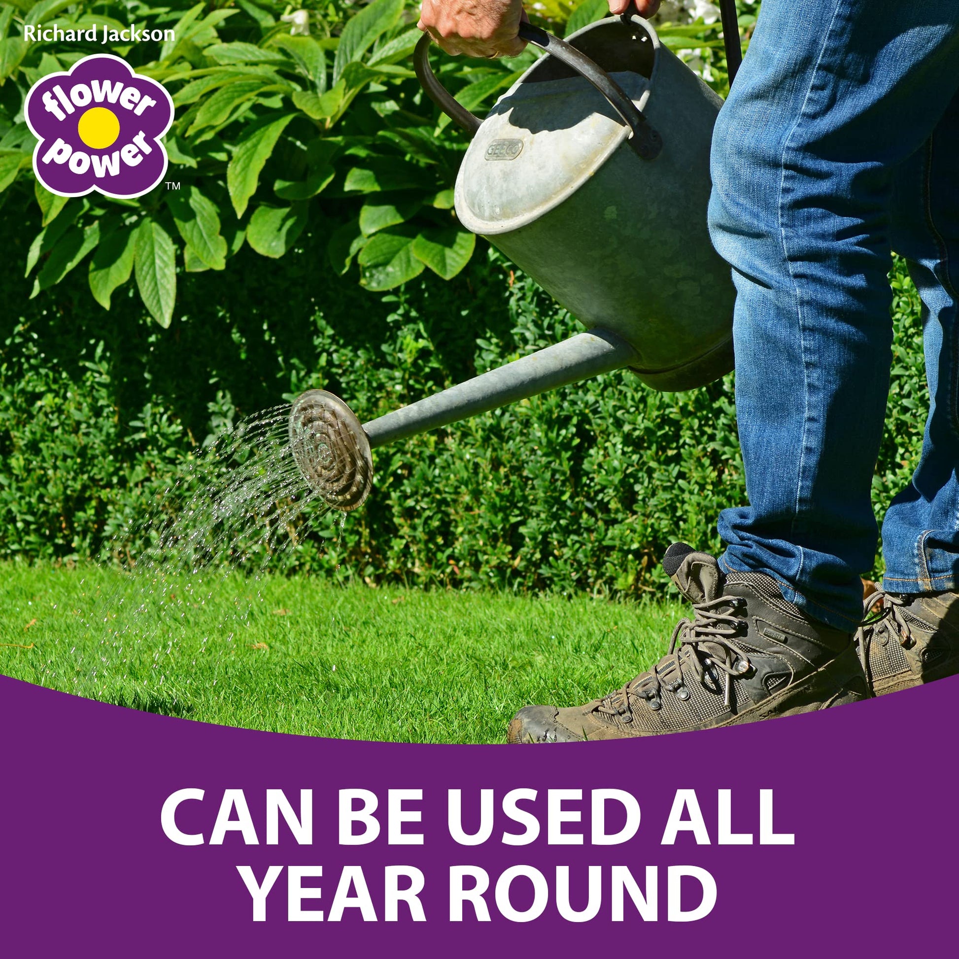 Richard Jackson Flower Power Premium Lawn Magic, Covers 500m, Lawn Feed for Gardens, Greens the Grass & Strengthens the Roots (5L)