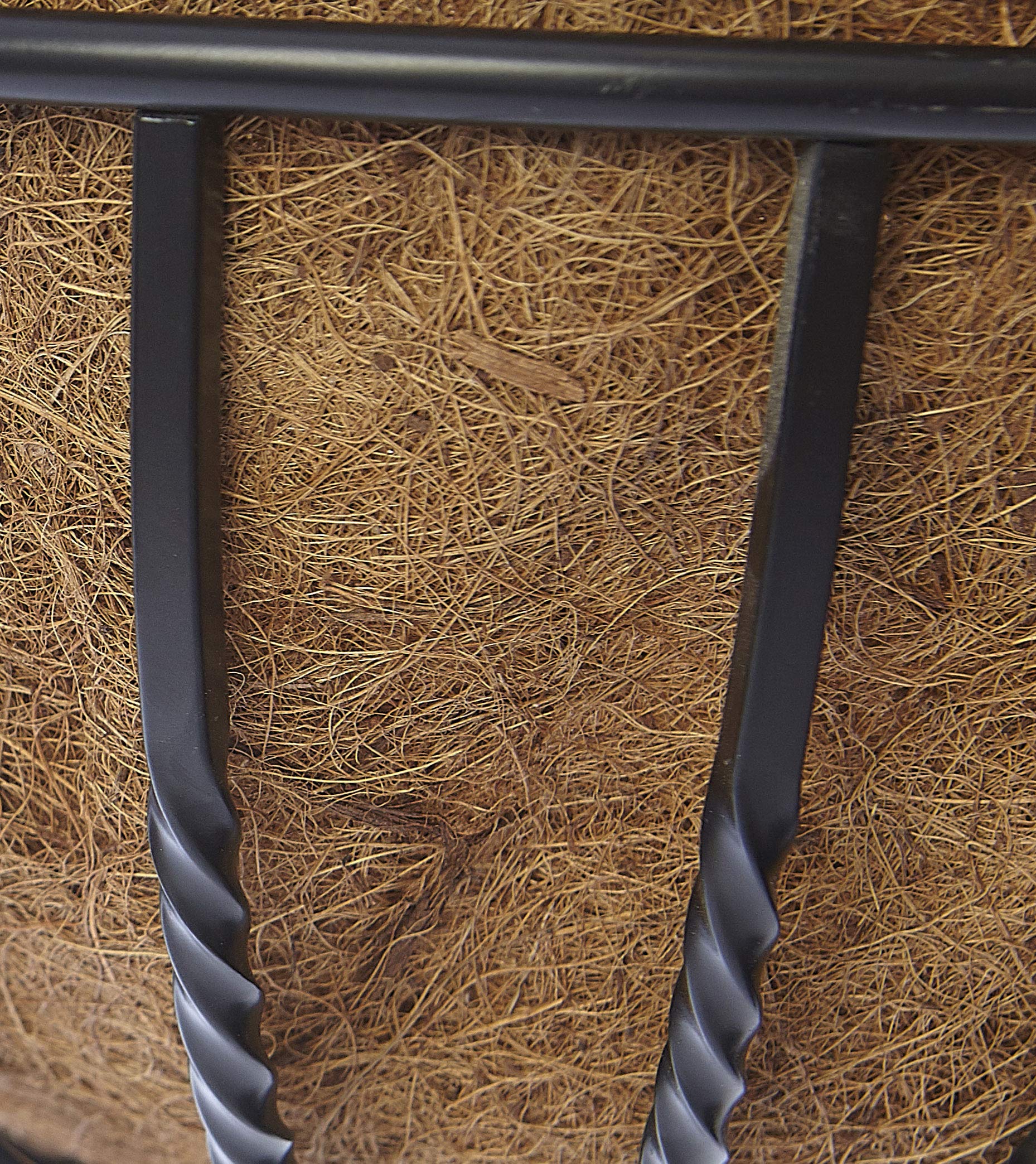 - Manufactured from heavy duty solid steel with strong welding through out. Features front twisted bars for decor.
