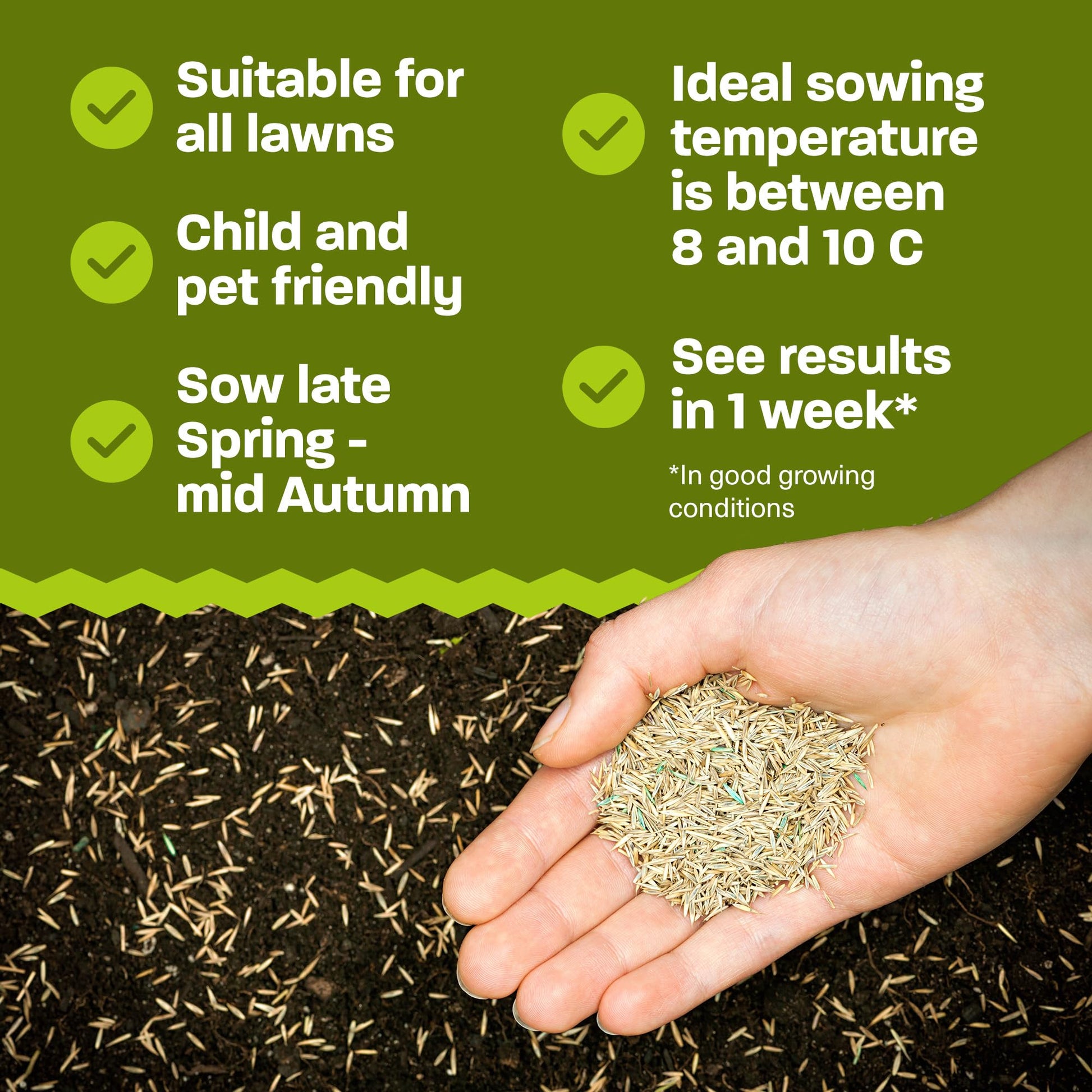 - Effortless to Grow - Sow with confidence, as this seed germinates rapidly for a speedy start. Its vigorous growth habit fills in fast, crowding out weeds for a lush, even lawn. It's very easy to use. The package contains simple to follow instructions for stress-free application. Simply shake on, rake in and water.