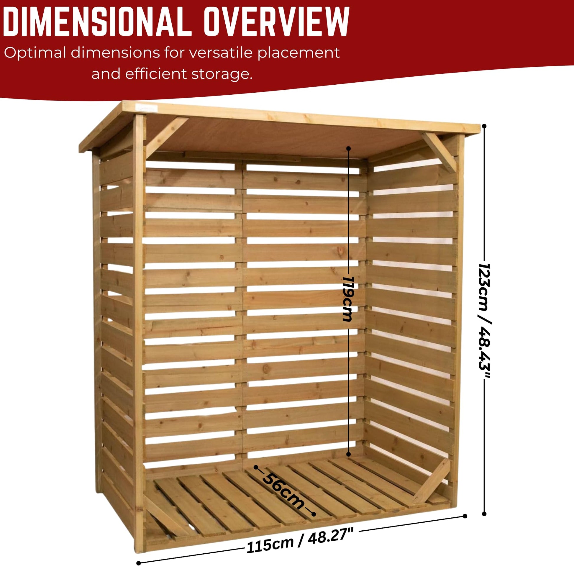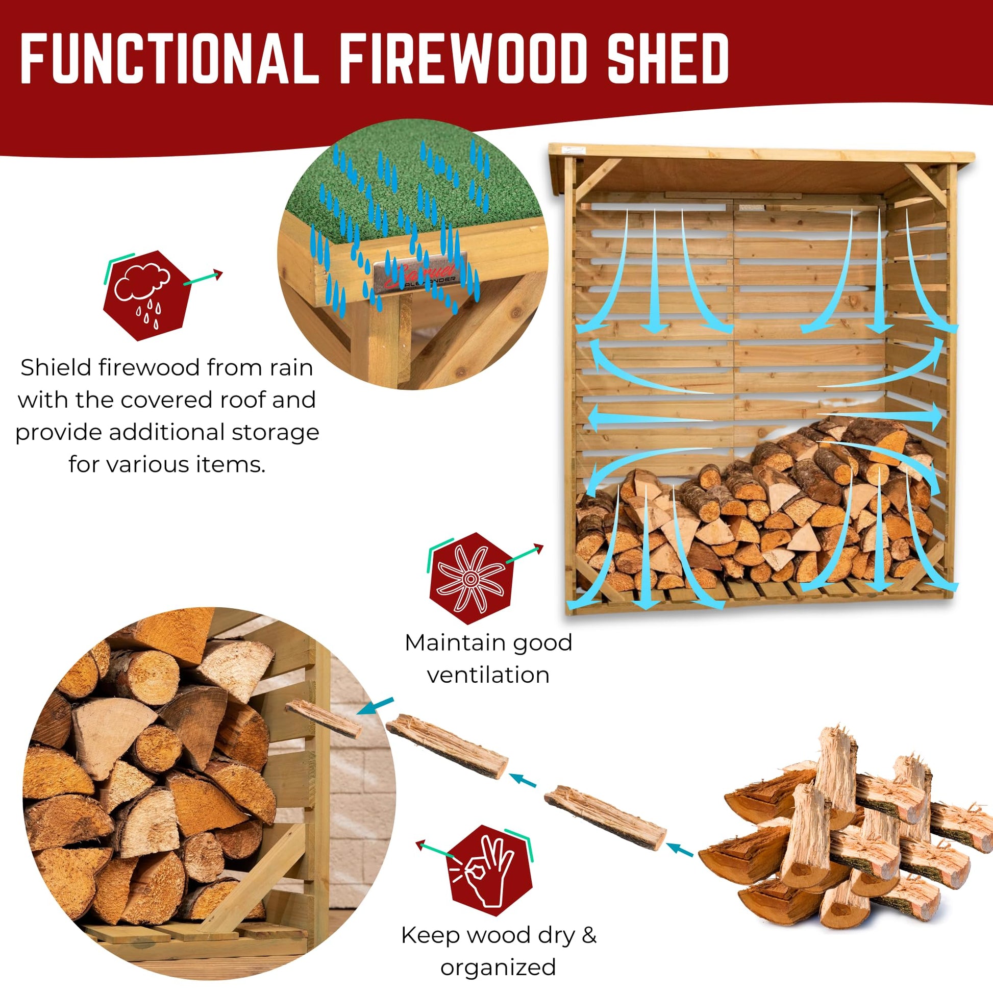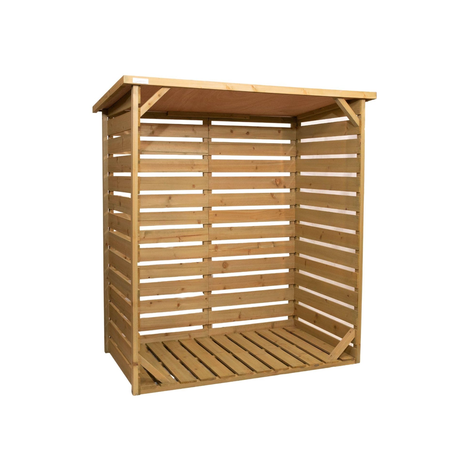 - With a practical design, the log store features a raised floor to help prevent moisture from seeping in and a sloping roof to allow the rain run off.