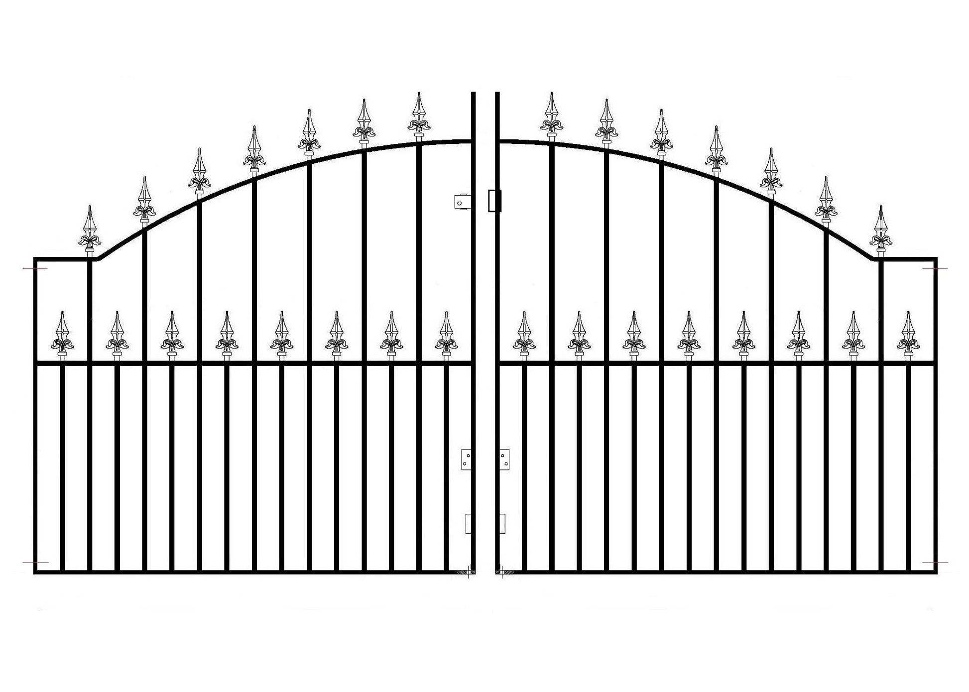 Details: Saxon arched metal spear fleur-de-lys finial driveway double gate. Listed sizes fits a POST to POST GAP, we already account for the hinge and latch gaps required. There are adjustable hinges for levelling the gates. See the images for actual width size detail. The side shoulder frame height is 820mm and rises to 1245mm to top of spears. The finish is electro galvanised for added rust resistance and powder coated black. Like any metal product, it will need to be inspected and possibly painted every couple of years to ensure long life. Comes with hanging brackets, rocker latch and two drop bolts, but no screws. Nuts and bolts must be painted after fitting. Solid metal 25mmx10mm frames and 12mm diameter infill bars. Optional metal posts available to purchase, search for BP70X1400ZP for flat top or BP70X1400Bzp for ball top blank metal posts. Return postage cost is for the buyers account. Postage is for UK mainland only and excludes Highlands, Islands and NI. Contact us prior to ordering if you require delivery to Highlands, Islands or NI to get a quote of the additional surcharge for those areas.