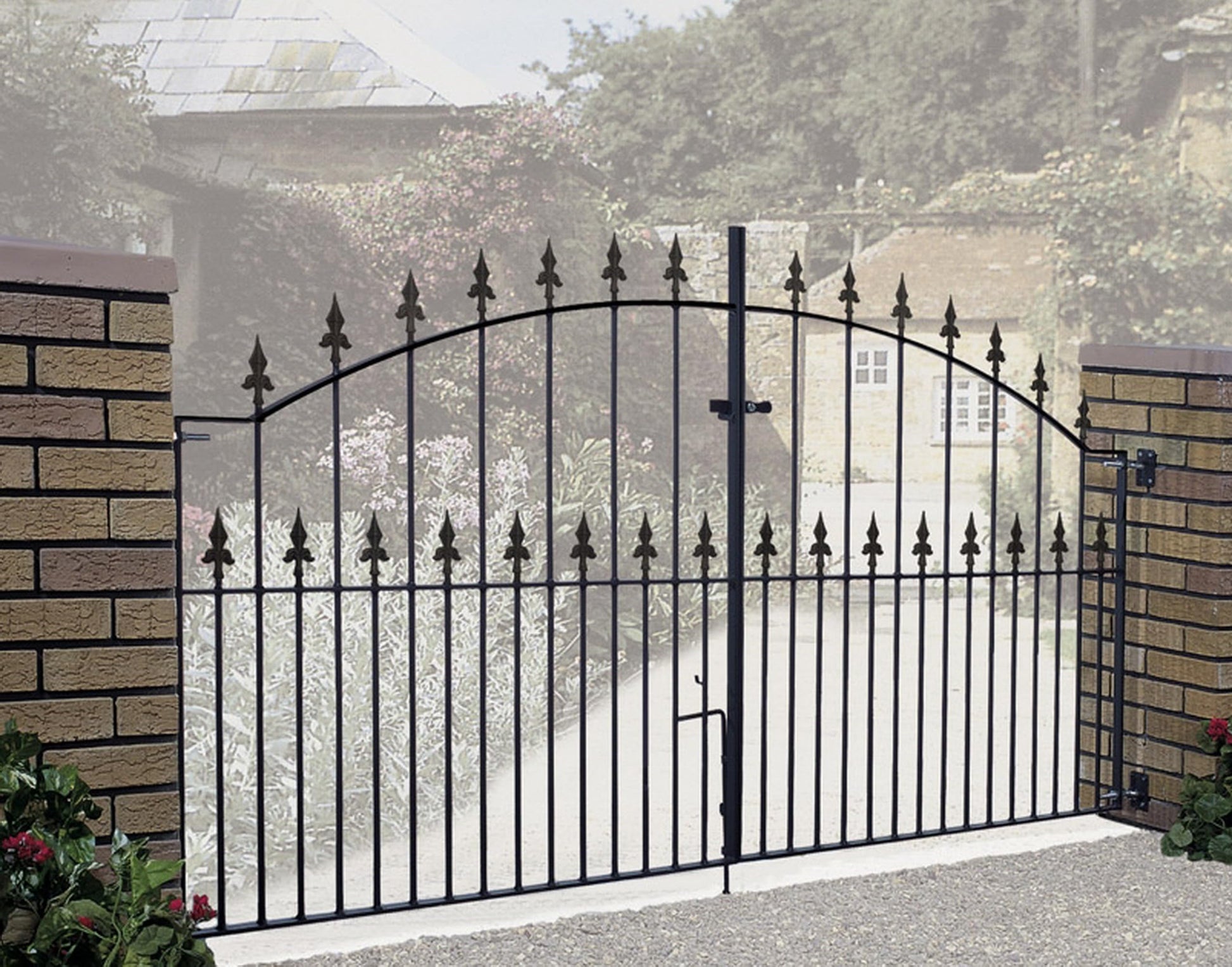 Saxon Arched Spear Top Metal Driveway Gates 1245mm High galvanised Wrought Iron Dual Swing gate (2438mm (8ft) Gap x 1245mm High SAZP13)