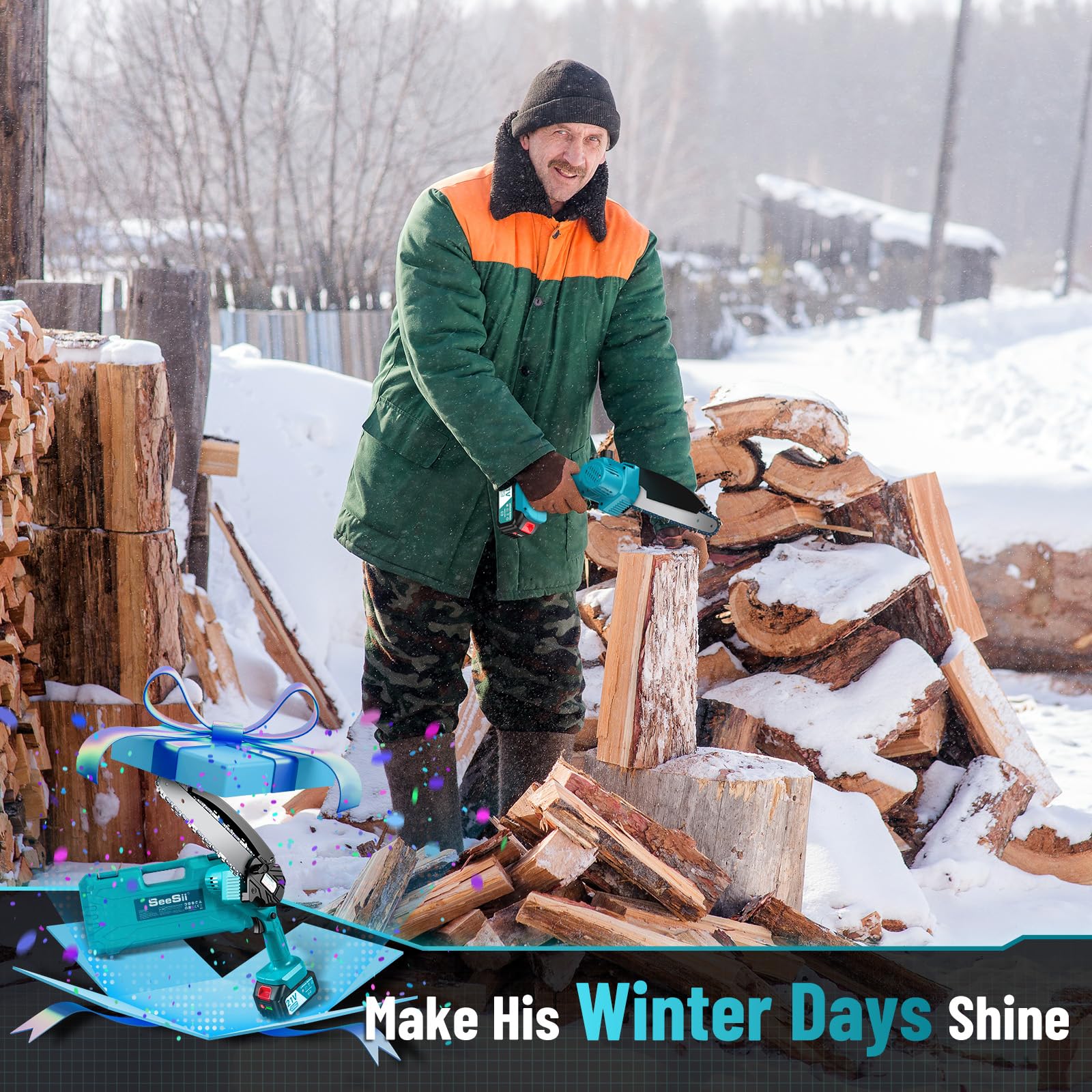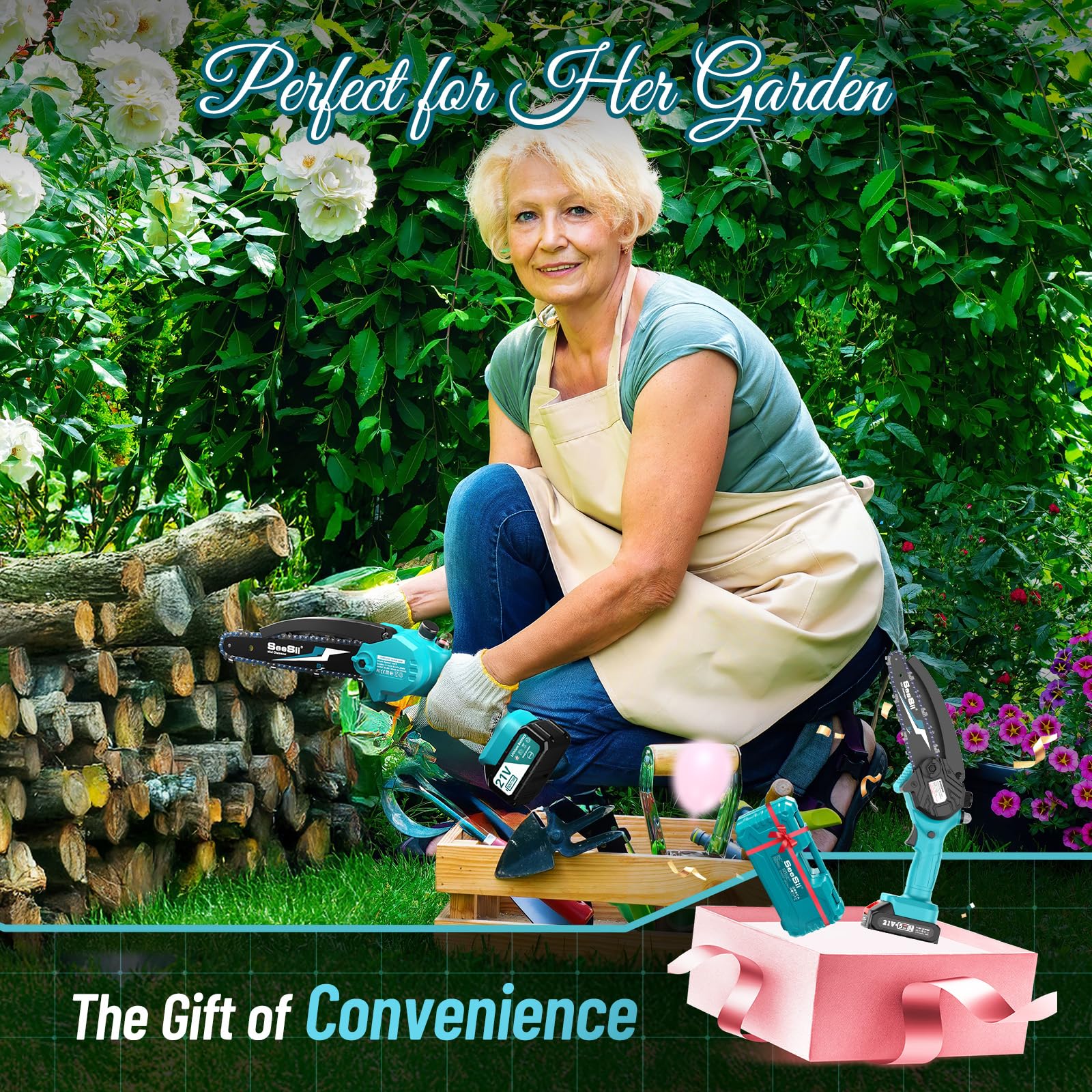 Seesii Mini Chainsaw Cordless 6 Inch with 2×4000mAh Batteries, Electric Saws for Tree Branches, Battery Powered Handheld Small Chain Saws for Limb Trimming Cutting,Gift for Men Dad Husband
