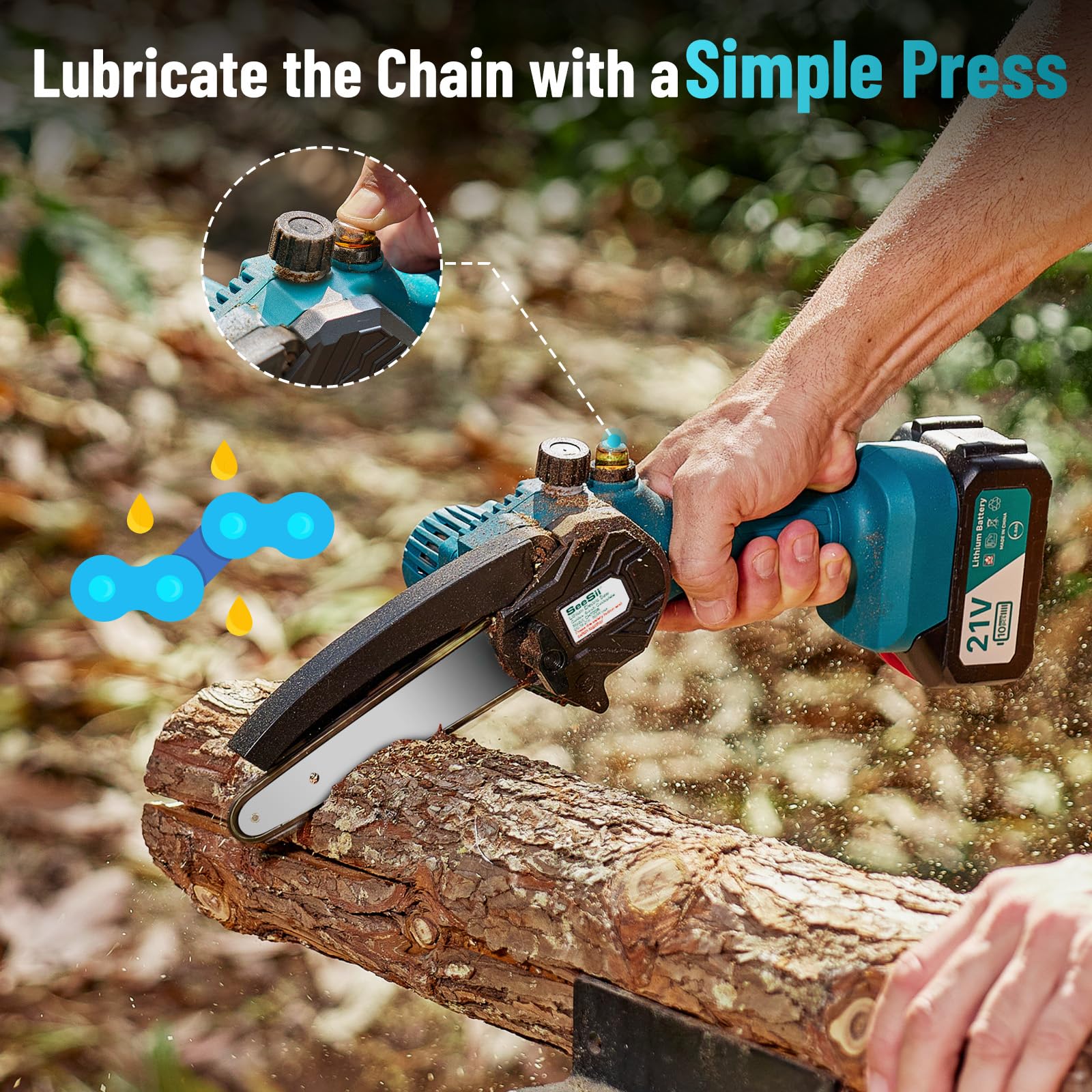 - 【Integrated Oil Reservoir】 Equipped with an integrated oil reservoir, our mini electric chainsaw ensures continuous chain lubrication, promoting seamless and efficient cutting operations. This feature not only enhances operational smoothness but also extends the chainsaw's operational lifespan with reduced maintenance requirements