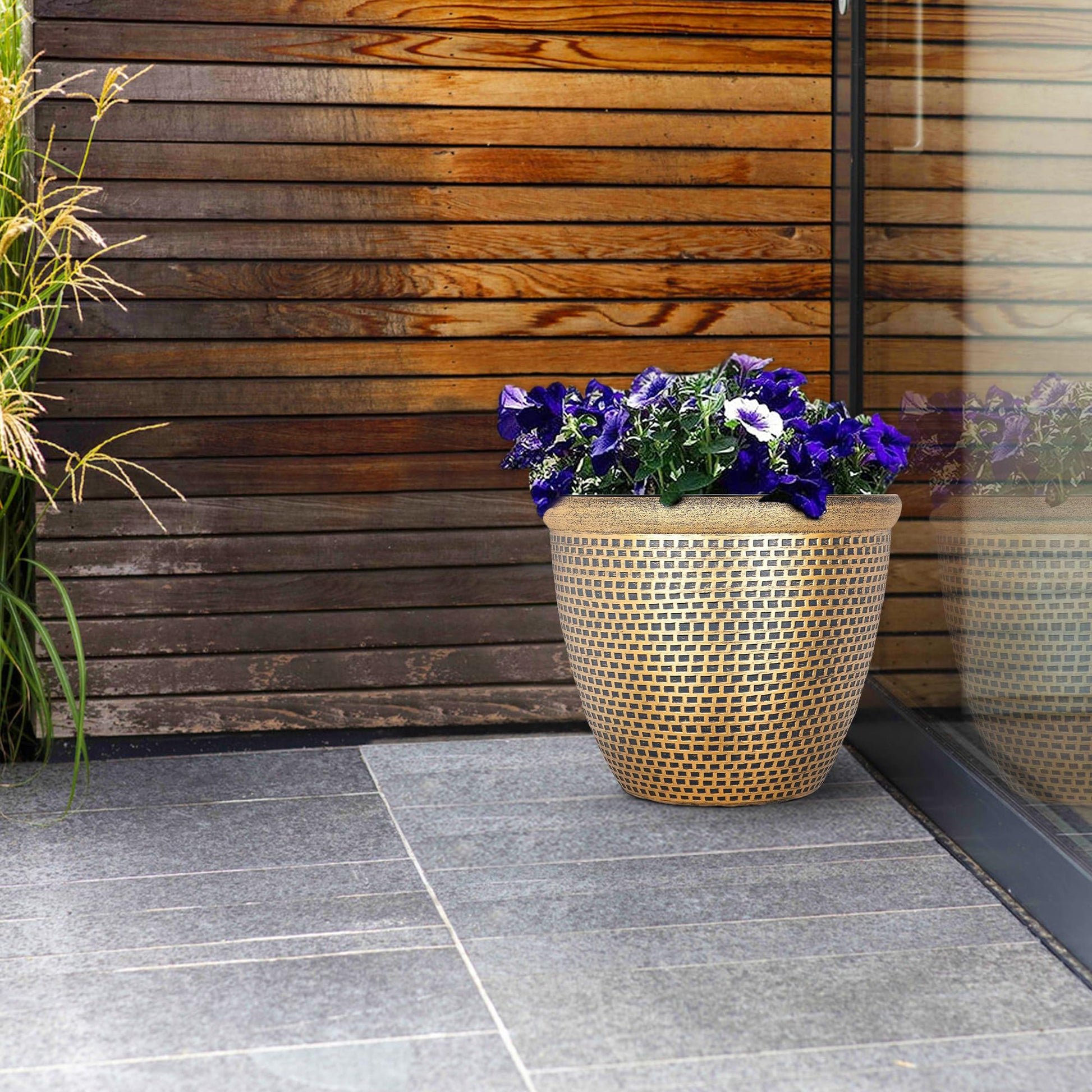 SG Traders 2 X Large Plastic Round Cromarty Plant Pot Flower Pot Planter Garden Decoration Gold 40cm Plant Pot Outdoor Flower Pots Outside Garden Planters Outdoor With Drainage Holes