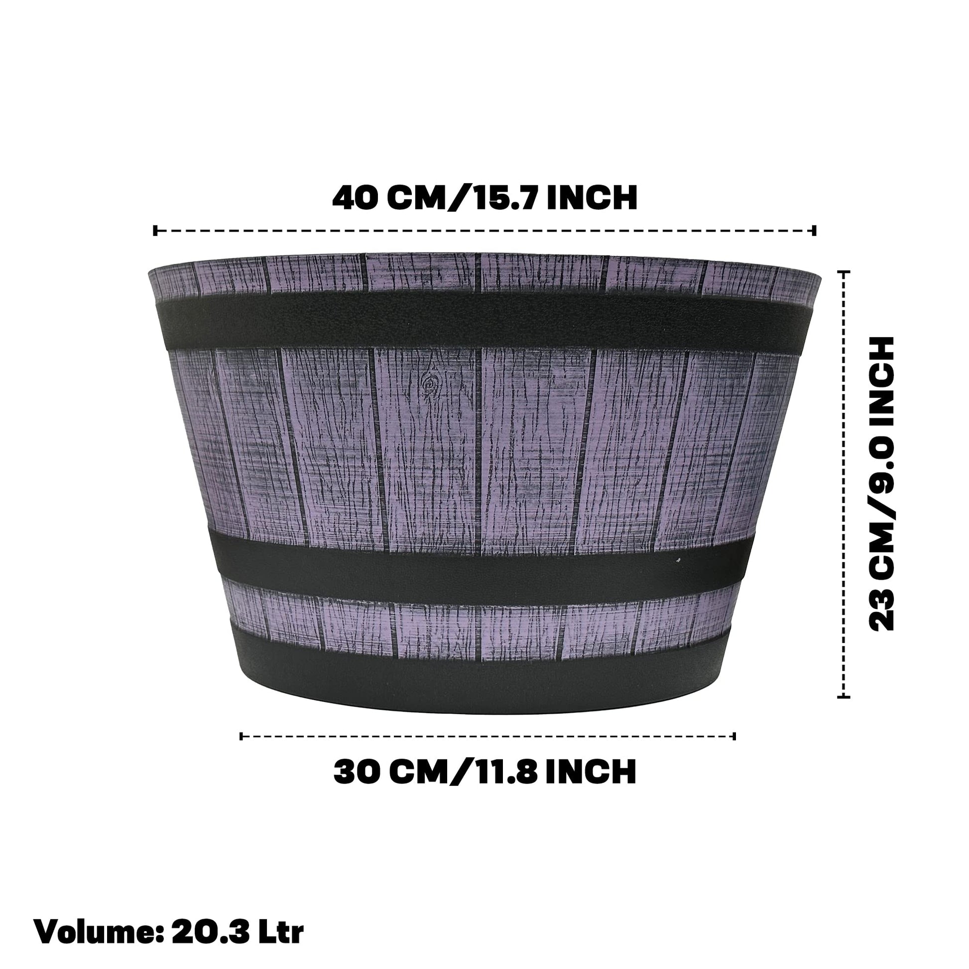 - šš„ššš§ ššš¦ššš”: The 40cm Lilac Slate barrel is an eye catching planter with its hand crafted finish with black bands around the barrel. A frost proof premium half barrel planter which has 3 pre drilled drainage holes at the bottom of the planter. Excellent to use in any room of your house and will also compliment your garden, terrace, patio or conservatory decor