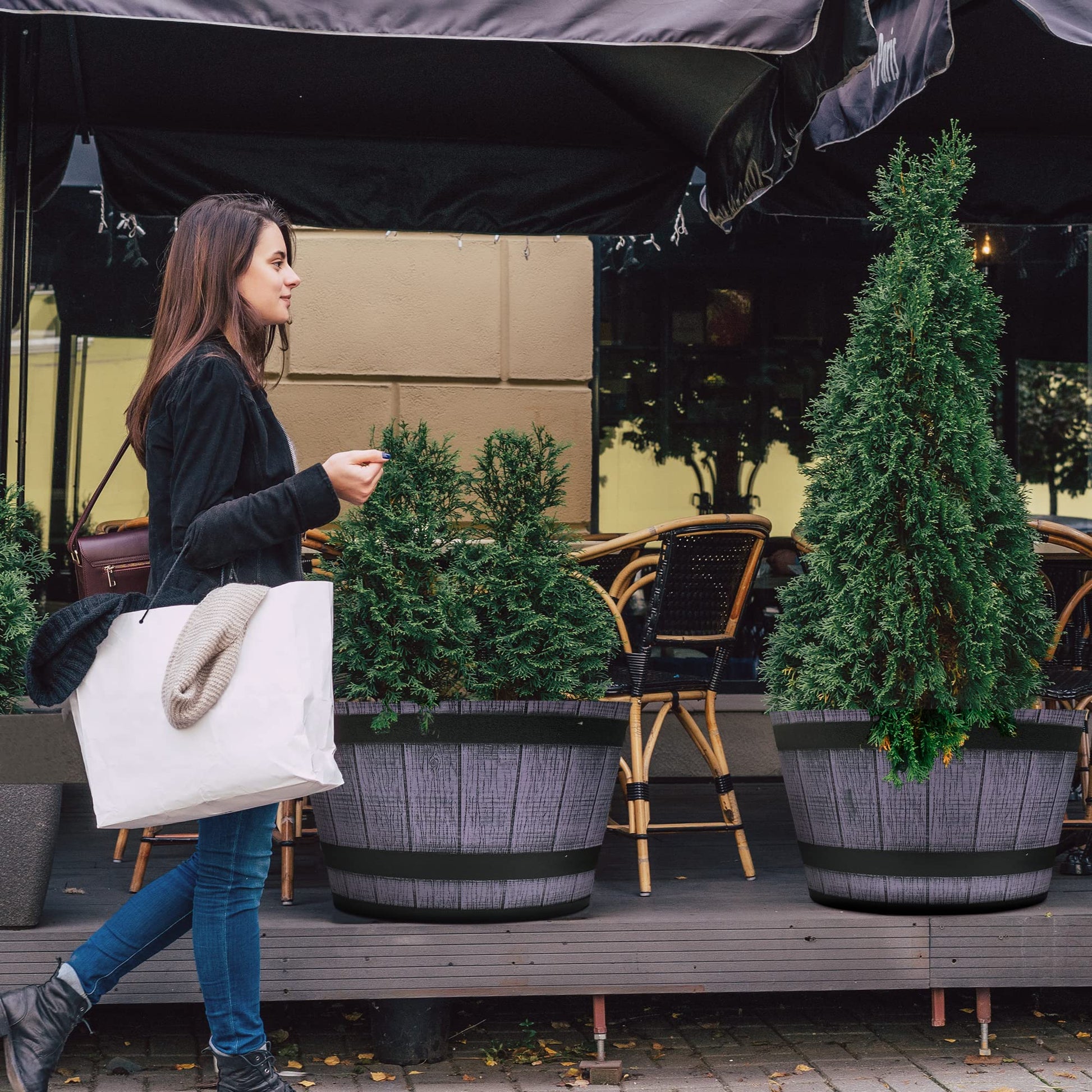 SG Traders Large Half Barrel Cask Planter, Flower Pots Outdoor Garden Planters, Indoor Plant Pot with Drainage Holes, Plastic, Stone Grey with Black Straps, 40cm