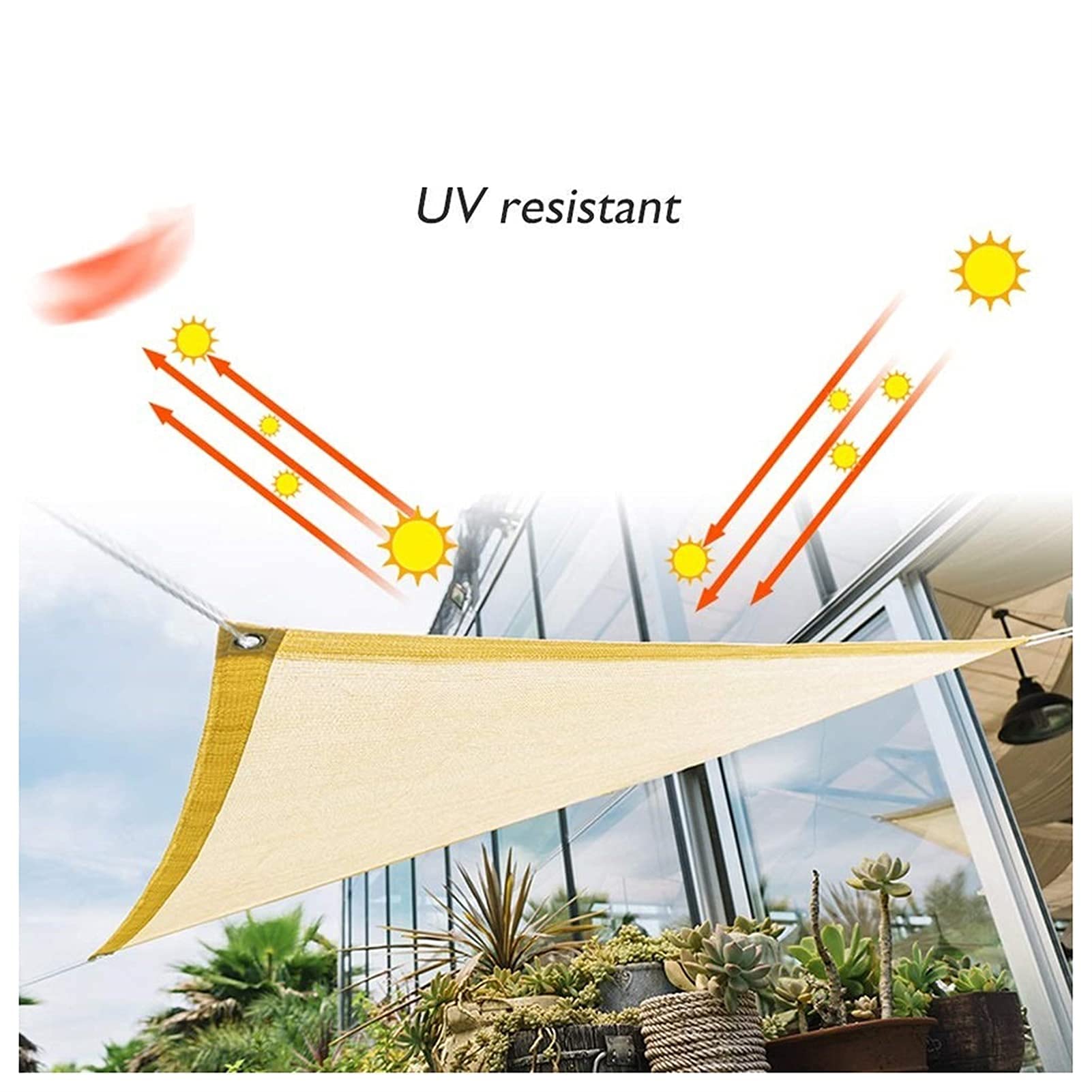 - You can use the garden shade sail wherever you need it. The solar sail has the functions of tear resistance and moisture resistance. Solar sails can also be used to prevent dust from garden furniture.