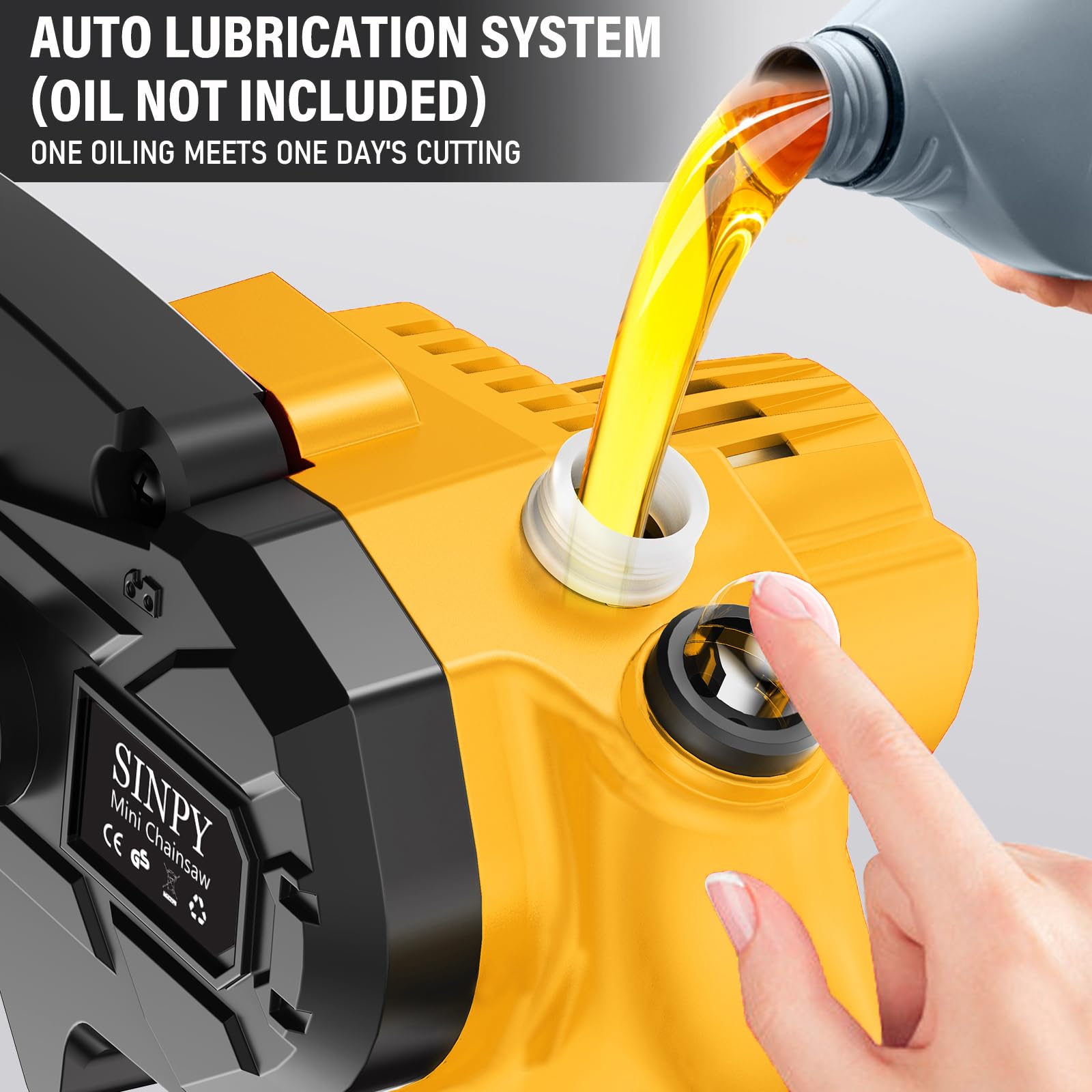 - đ SINPY Gifts for Men Mini Chainsaw Cordless 6 Inch with 2 Battery and Quick Charger, Battery Chainsaw Electric Small Chain Saw with Oiler System and Security Lock for Wood Cutting Stocking Stuffers