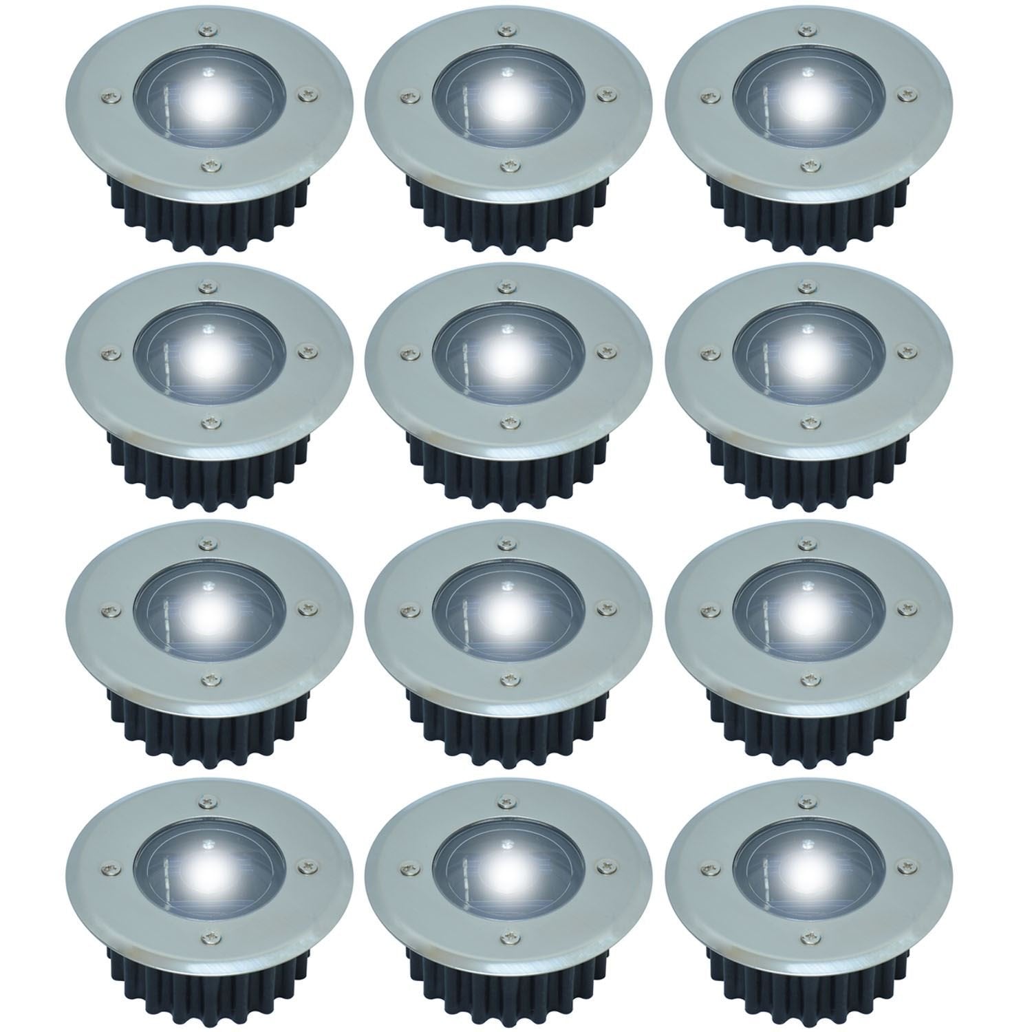 Solalite 12 Pack Solar Decking Lights Outdoor Garden Stainless Steel Solar Powered Ground Disk Lights Lamp Bright White Deck Landscape Pathway Lighting