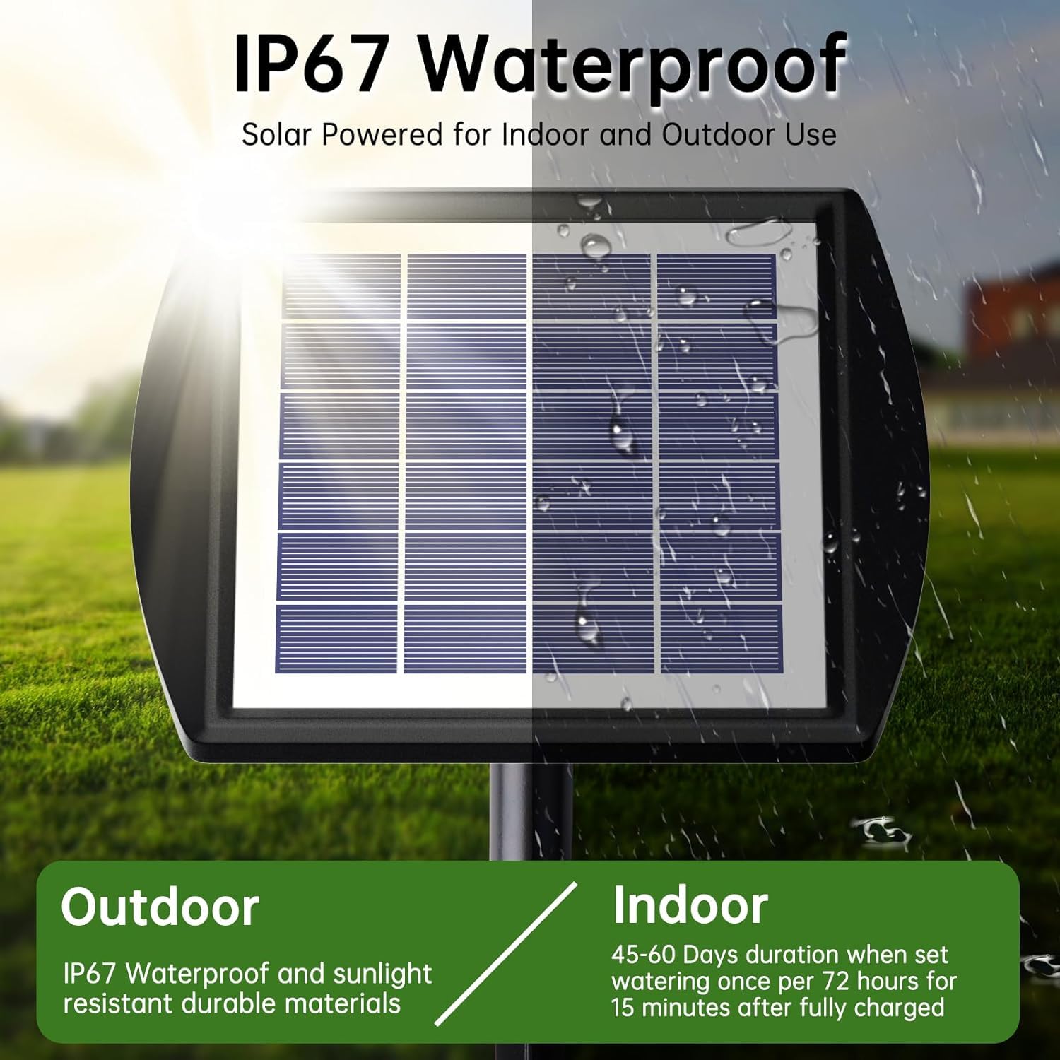- š [Automatic Watering System] - The solar powered automatic watering system can deliver water to 15 droppers at the same time, and the water delivery speed is 400ml/min, which can achieve the effect of unmanned automatic watering. It is the perfect solution for watering indoor plants when you go out on vacation.