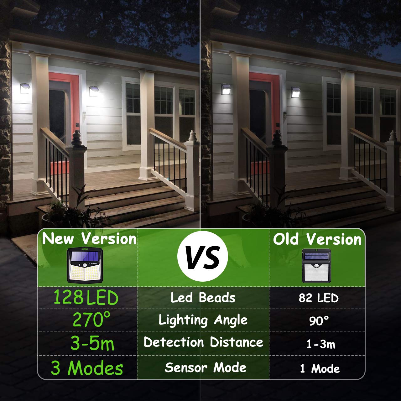 Solar Lights for Outdoor, Claoner 128 LED Motion Sensor Security Lights with 3 Lighting Modes IP65 Waterproof and Durable for Wall, 270° Angle for Yard Door Fence Pathway(4 Pack)