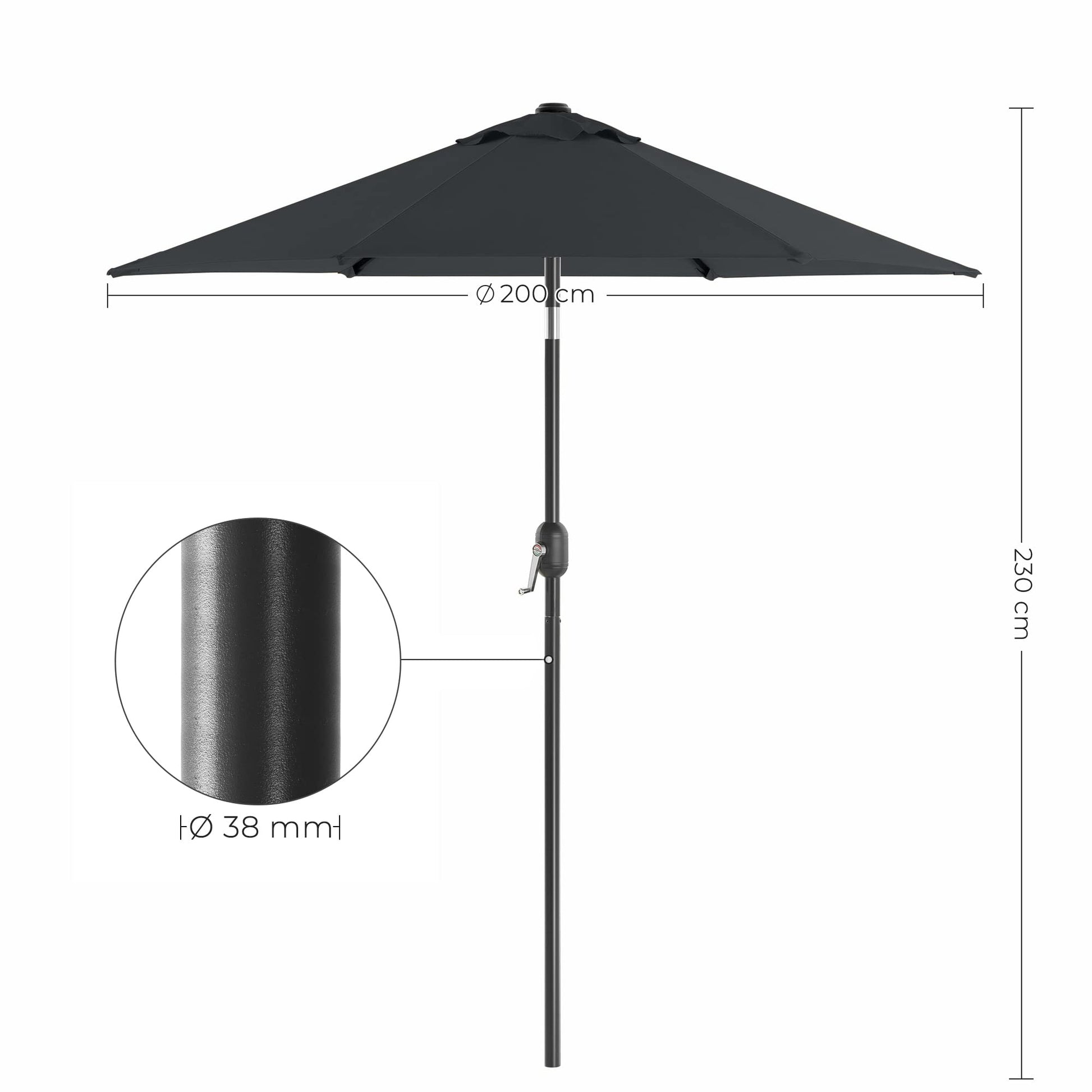 SONGMICS 2.1 m Garden Parasol Umbrella, UPF 50-, Sun Shade, 30° Tilt in 2 Directions, Crank Handle for Opening and Closing, for Outdoor Gardens Pool Balcony Patio, Base Not Included, Grey GPU202G01