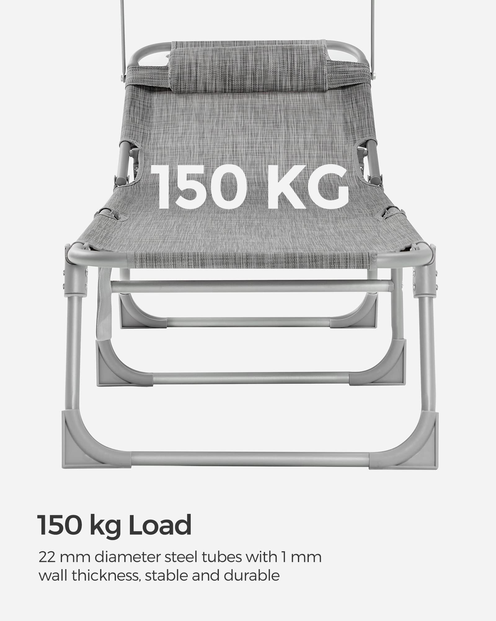 - [Stable and Wobble-Free] This sturdy reclining sun chair, with its powder-coated steel frame and reinforced joints, can support up to 150 kg and remains stable thanks to the anti-slip feet. Sit back and relax by the pool with confidence this summer