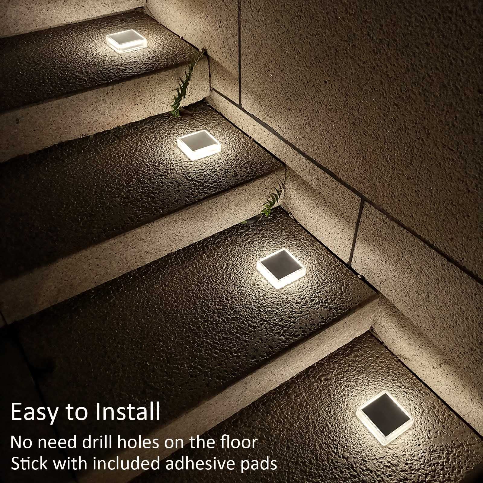 - 【Easy Installation】No need screws, no need to drill hole and break floor, the solar step lights outdoor comes with strong waterproof double-sided adhesive tape, that can be firmly and easily attached to any smooth ground.