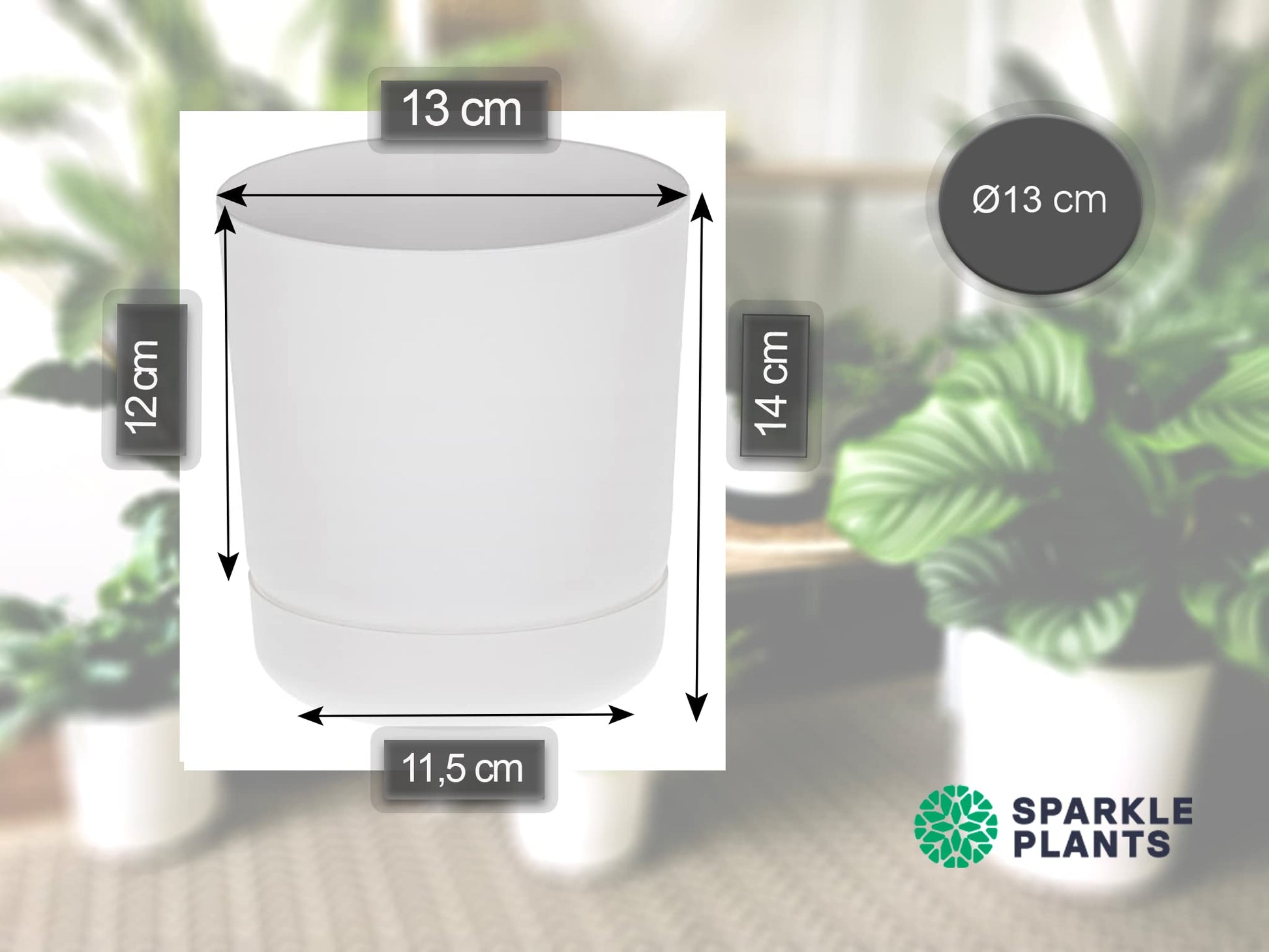 SPARKLE PLANTS Satina Indoor Plant Pots, 5 sizes – White Plant Pot with Drainage Holes and Matching Saucer for All Houseplants – Modern Home Decor Round Flowerpot Stand (13 cm, White)