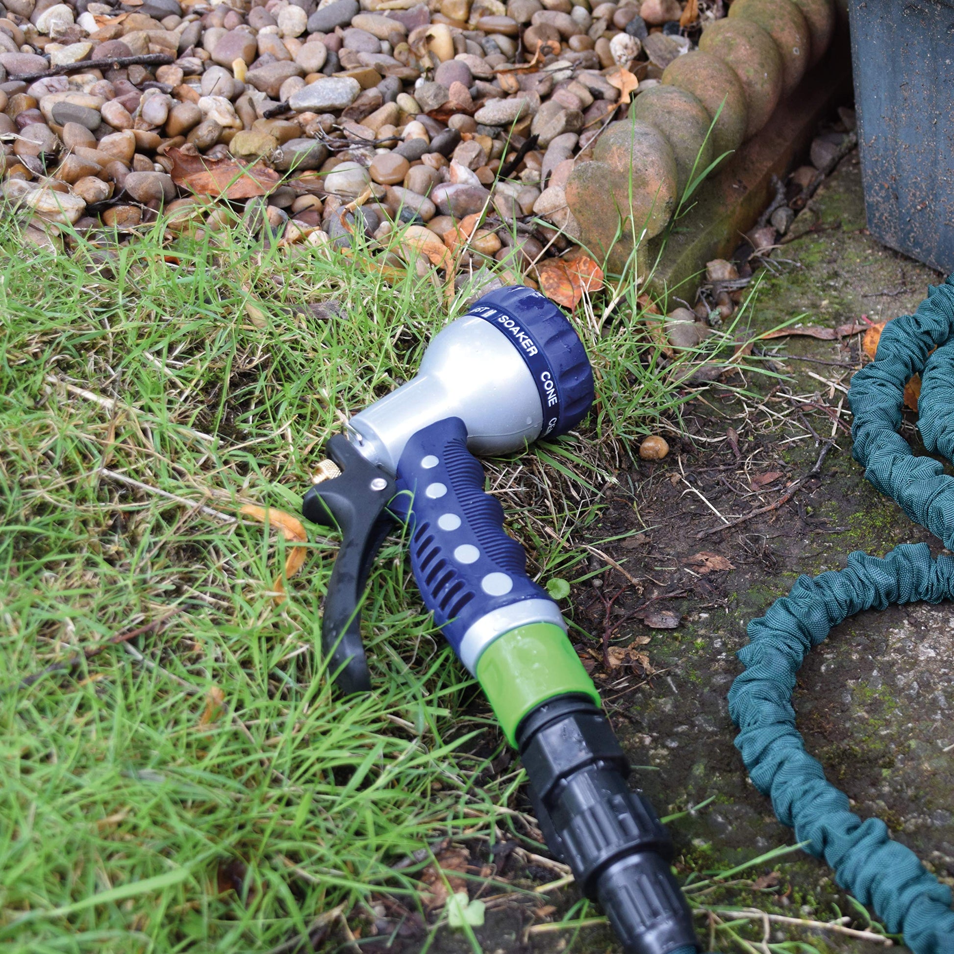 - A choice of seven flow functions: Jet, shower, cone, mist, soaker, centre and flat