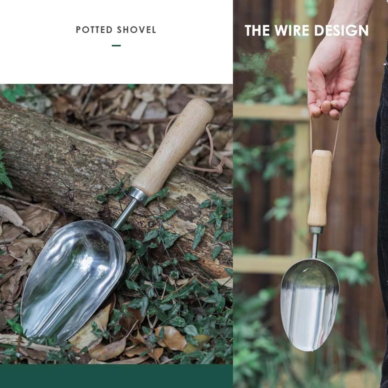 - Lightweight design: At12.6*3.5*1.38 inches, with a lightweight wood and metal design, this scoop is easy to control and convenient to use for gardening.
