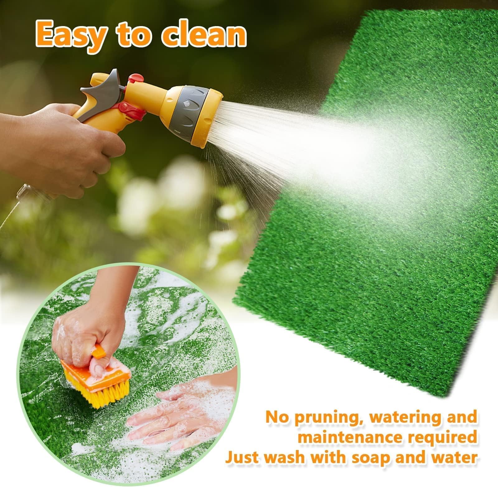 - [Easy to clean]:Just wash with soap and warm water, then dry. Drainage holes and high permeability make Dog Grass mats easy to clean and fast drying. Not machine washable.Dog Turf uses special design.The backing layer in the four-layer structure can reduce the generation of odor and prevent the growth of unhealthy stuff.