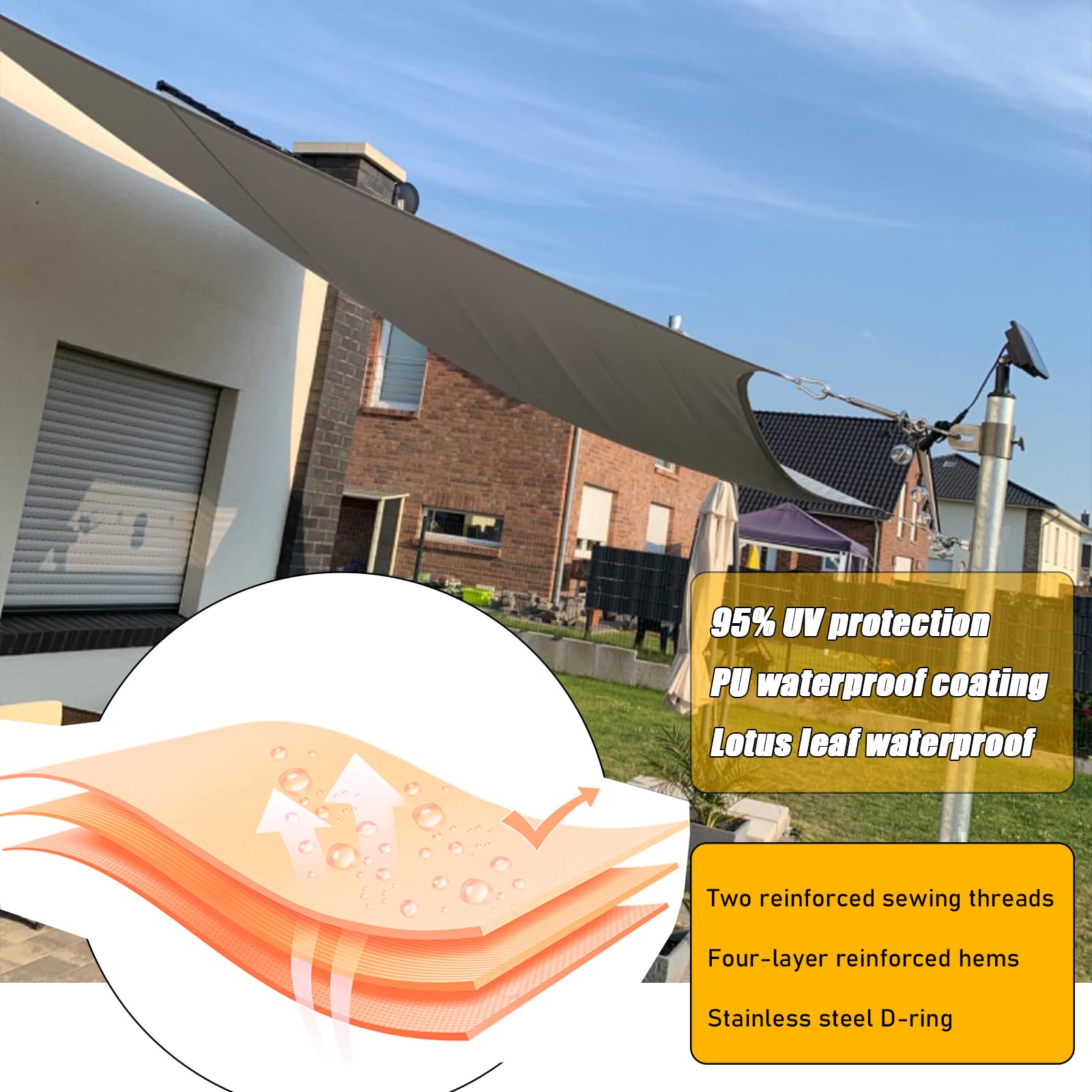 - SUPERIOR WATERPROOF FUNCTION: Our shade sails are coated with waterproof PU, which can provide excellent waterproof effect. The seams of the sails are hot-ironed to effectively prevent water leakage at the seams. The waterproof performance of 2000mm water pressure can effectively protect your outdoor space even in heavy rain.