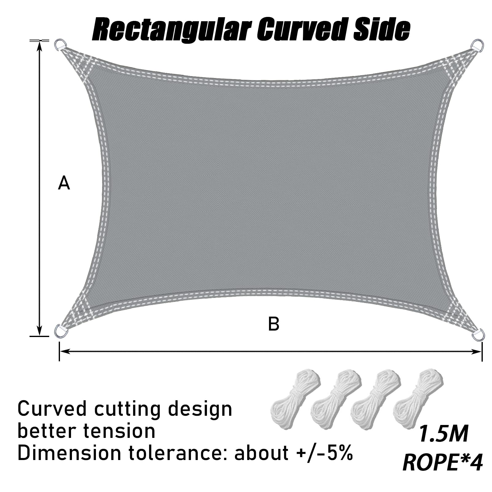- DURABLE STRUCTURAL DESIGN: Our shade sails use continuous sewing webbing on the edge of the fabric. This design can evenly distribute tension, ensuring that the sail surface will not sag or deform, making it particularly stable and wind-resistant. Whether it is a storm or strong sunshine, you can rely on this shade sail to provide continuous protection.
