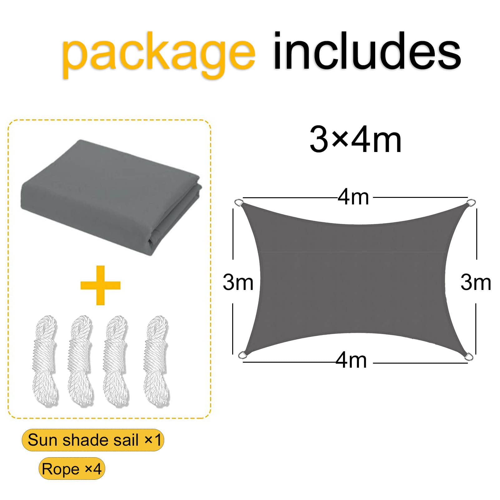 Sunal Sun Shade Sails 3m x 4m, Rectangle Waterproof Shade Sail for Garden, 98% UV Blocking Outdoor Sun Shade Shade Canopy with Free Rope for Outdoor Garden Pergola Patio Party Backyard Lawn, Grey