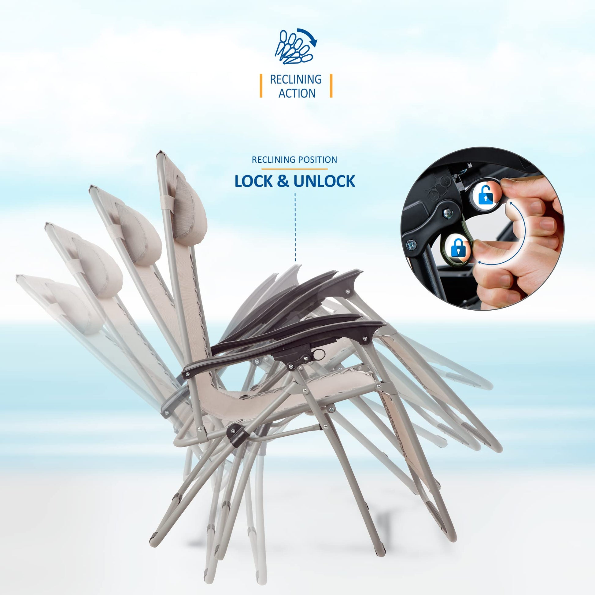SUNMER Set of 2 Sun Lounger Garden Chairs With Cup And Phone Holder - Deck Folding Recliner Zero Gravity Outdoor Chair - Grey/Grey