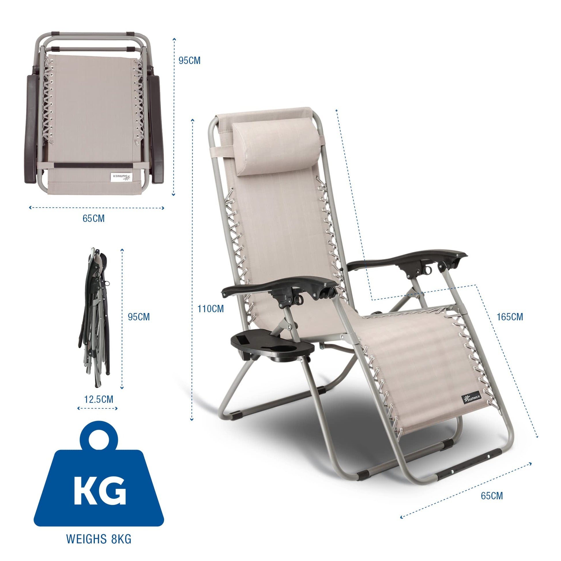 - PACKAGE DIMENSIONS: 95.5cm x 25cm x 60cm | UNFOLDED CHAIR SIZE: 165cm x 65cm x 110cm | FOLDED CHAIR SIZE: 95cm x 12.5cm x 110cm.