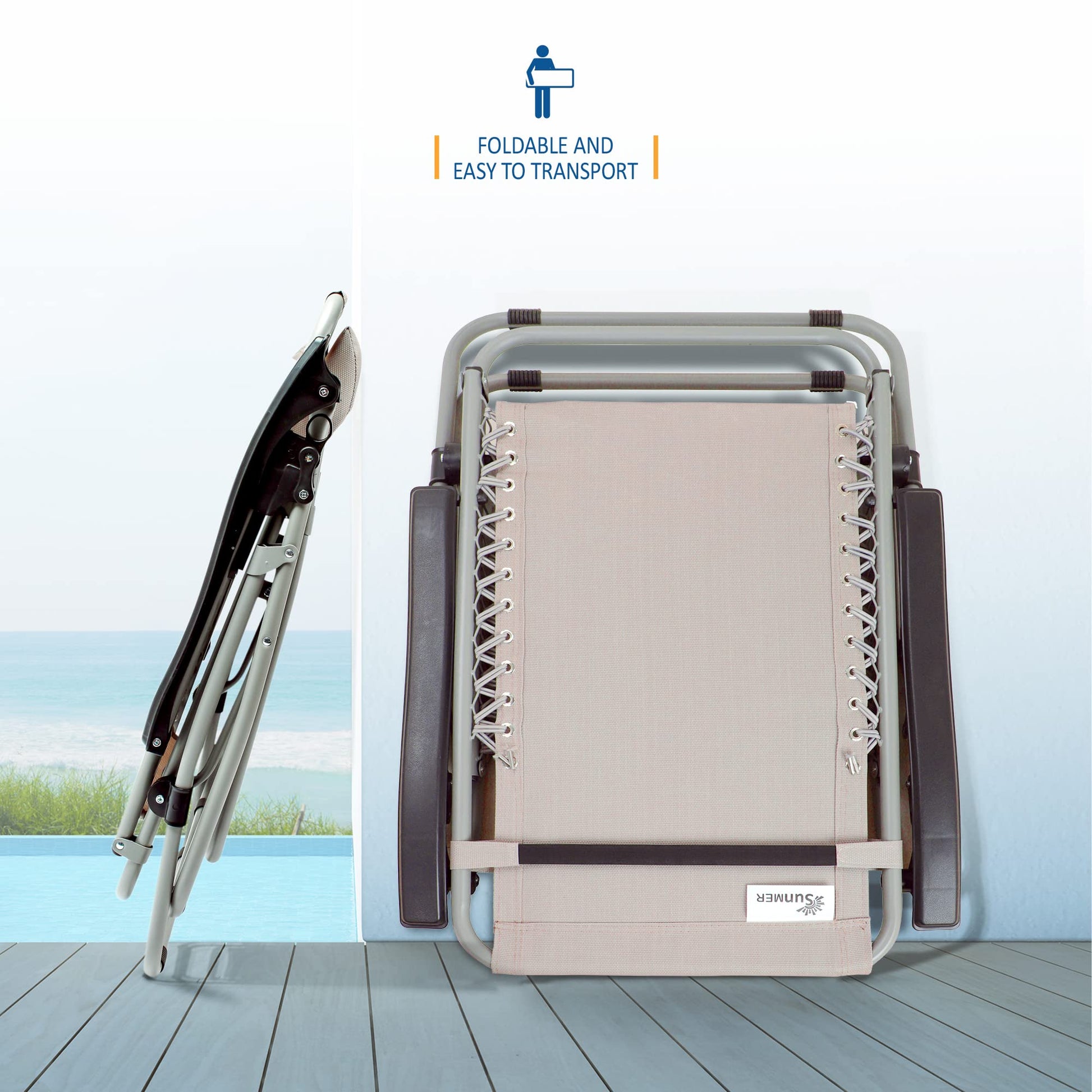 - SET OF TWO SUN LOUNGER GARDEN CHAIRS: These SUNMER Sun Lounger Garden Chairs are the ideal way to soak up the summer sun when the weather gets warmer. Featuring cup holders and cushions, you are sure to notice the luxury touches added to this set of two chairs.