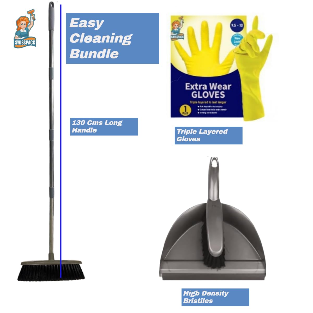 - Extended Reach Handle: Includes a 120 cm long handle, offering comfortable sweeping and extended reach for cleaning hard-to-access areas with ease.