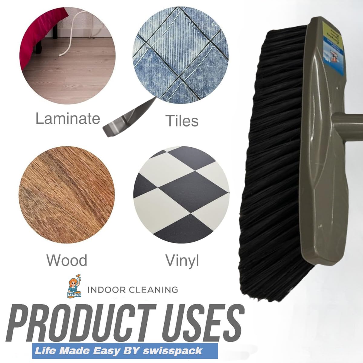 Details: SWISSPACK Broom Indoor Sweeping Broom Brush with Long Handle, Kitchen Broom Indoor Floor Brush with Dense Soft Bristles Brooms Perfect for Sweeping Room Office Kitchen Ideal for Any Floors