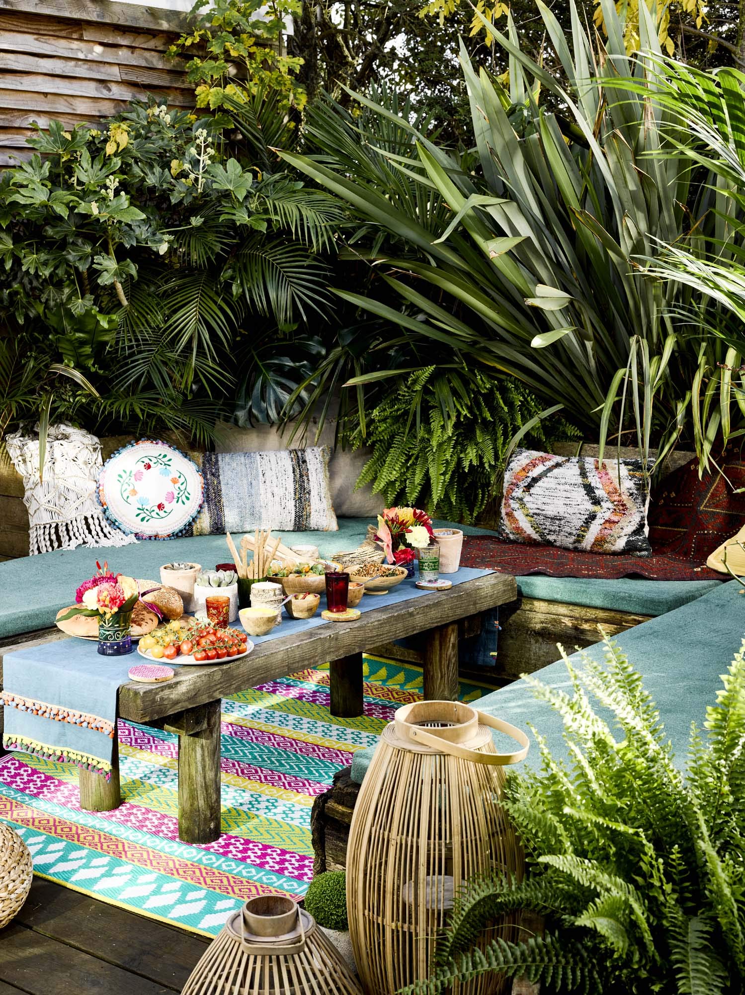 - Brighten up your home or garden with Talking Tables Multi-Coloured Outdoor Rug. This garden rug feature geometric patterns and is fully waterproof, making it great for kids, pets and drink spills!