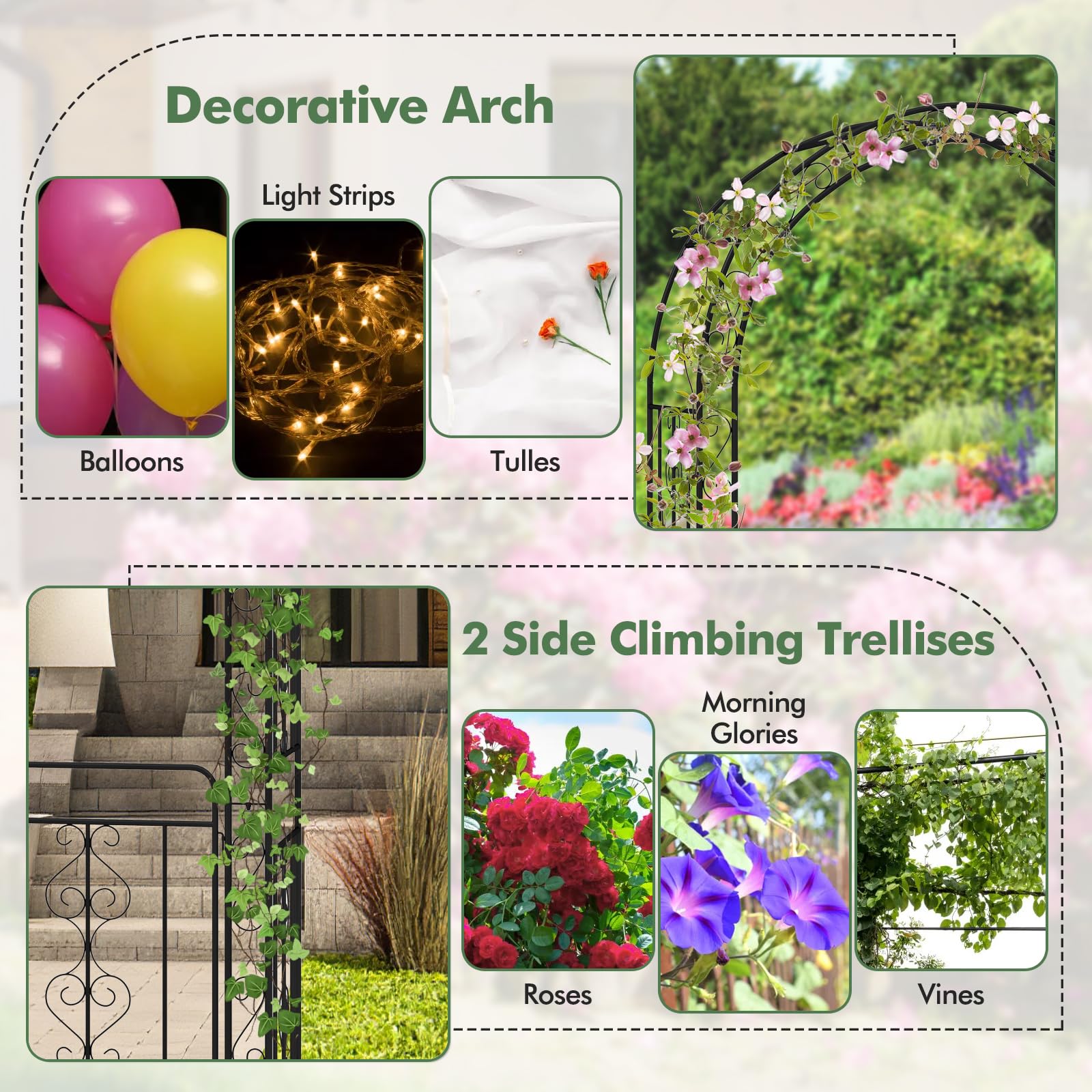 - VARIOUS DECORATION OPTIONS: This arbor trellis not only suits for plants in gardens, but also can be decorated by balloons, tulles, lights and so on. Whether for backyard, front porch, party or wedding, it will always be a nice addition.
