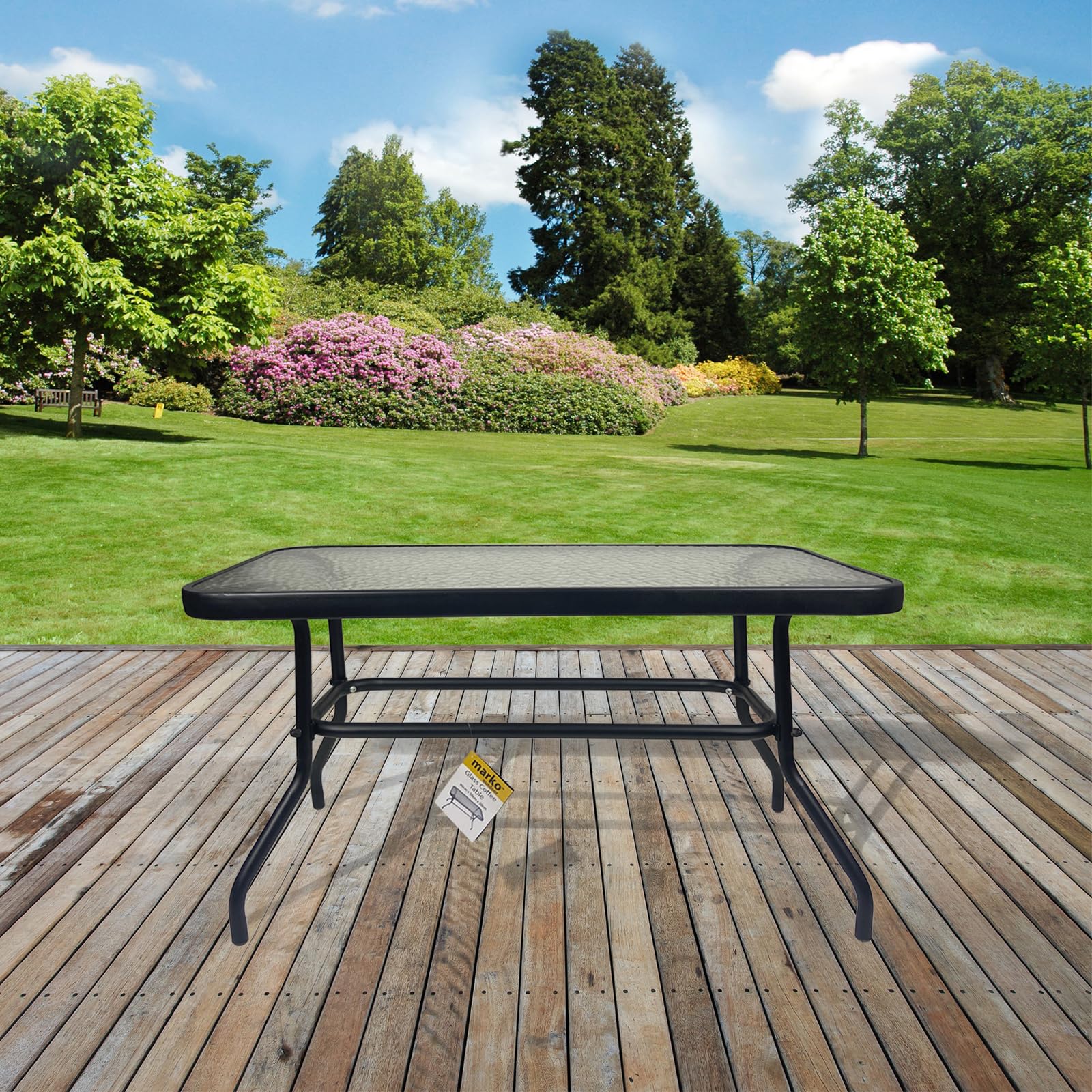 - Tempered glass topped table