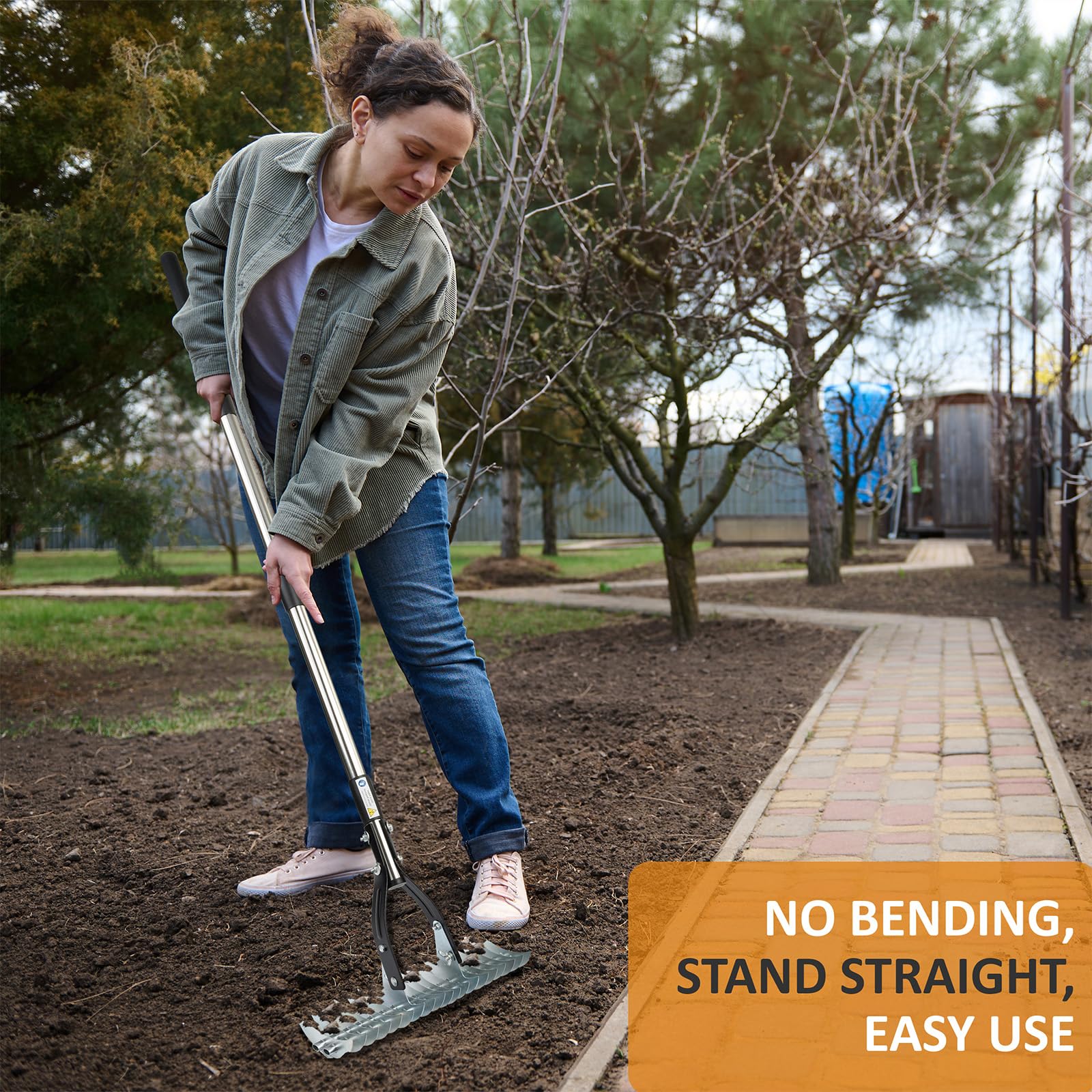 - ✔ {Adjustable Handle (106cm - 178cm)}: Customize the rake’s length for comfortable use, reducing back strain.